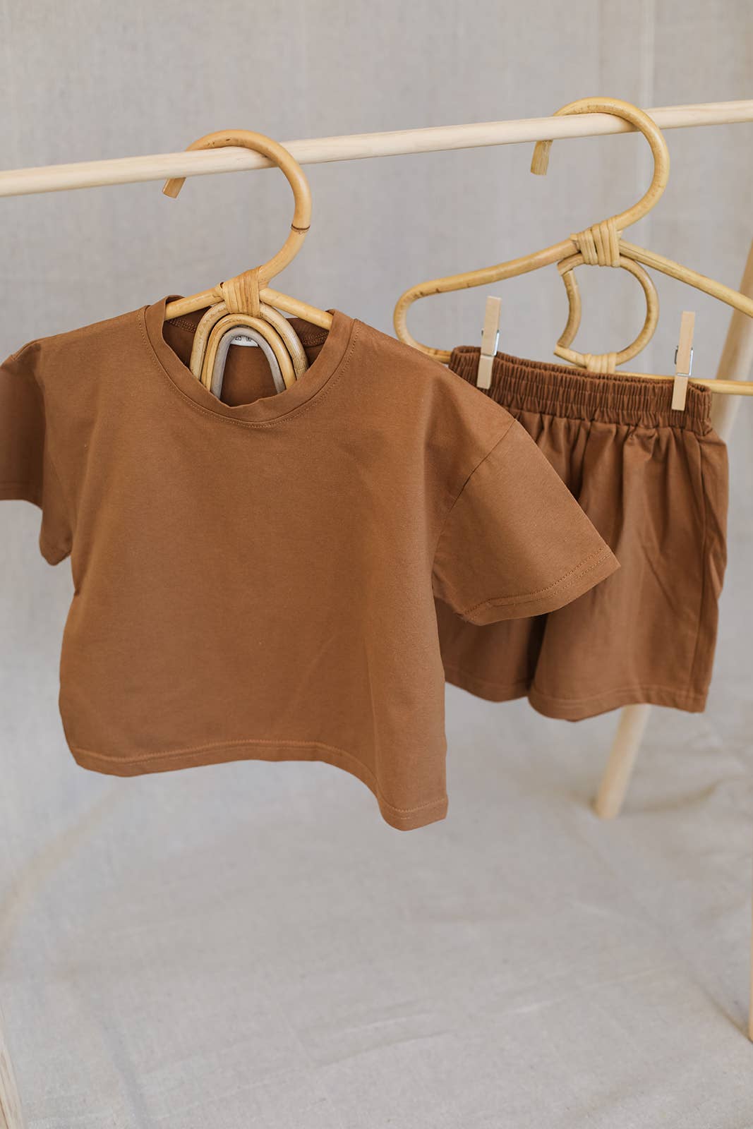 This gender-neutral set comes in a rich cocoa color that is perfect for fall (especially if you're in a warmer climate like us!). It is made of super soft, breathable cotton that is perfect for playing outside!