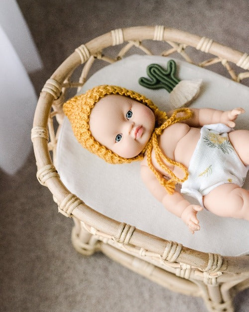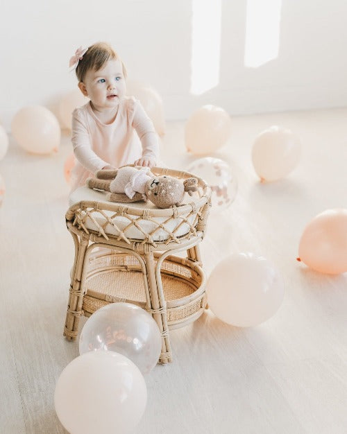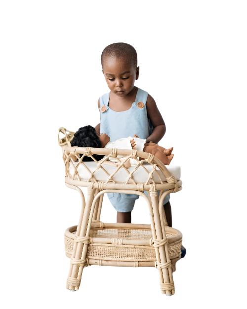 Made to pair perfectly with our full-sized changing table, this adorable doll-sized version will spark joy in your little one’s eyes! Made with sustainably-sourced rattan that’s smooth to little hands. You’ll love the hours of “me-time” and self-directed play. They’ll love the realistic “just-like-a-grown-up” design that brings smiles to little faces, and happiness to precious hearts.