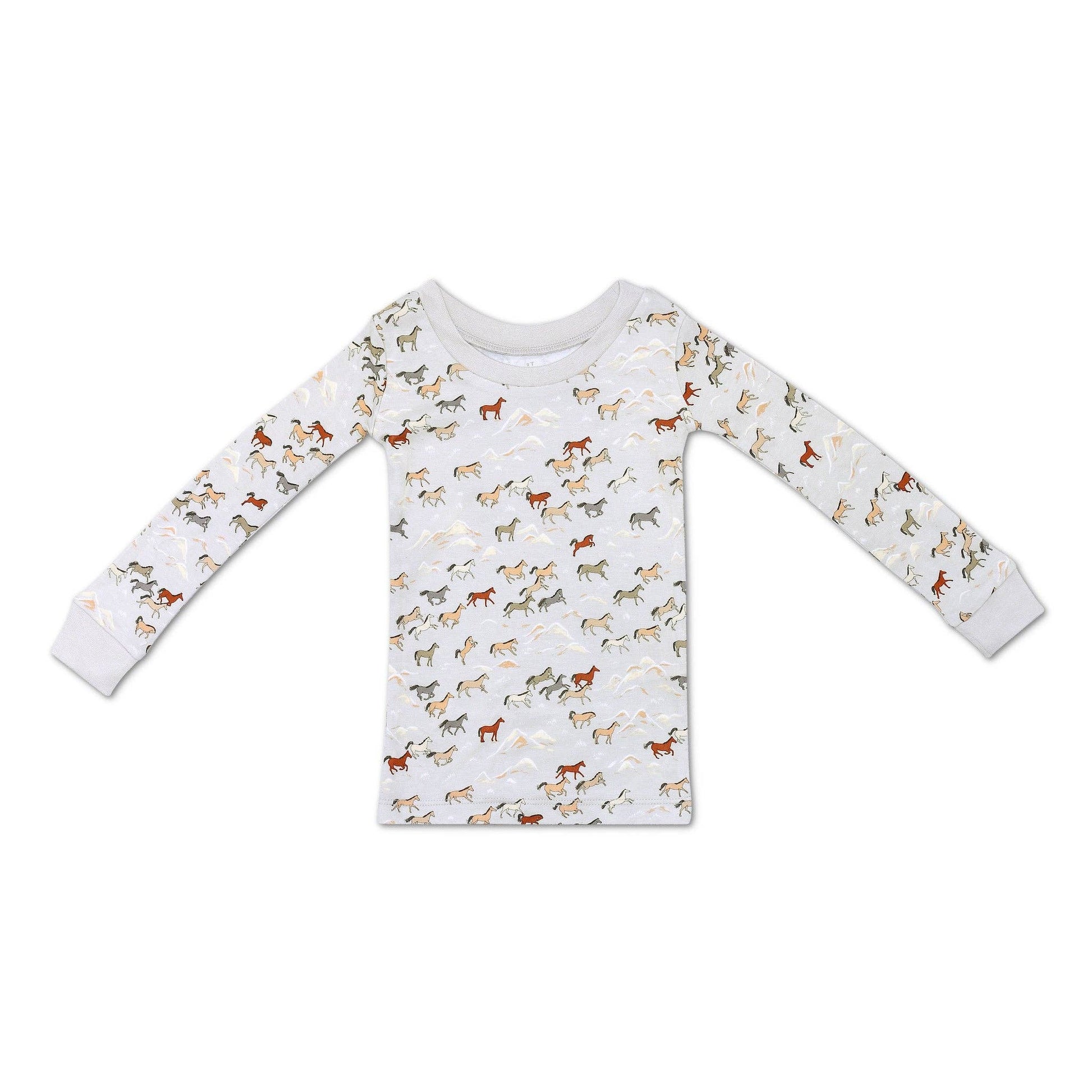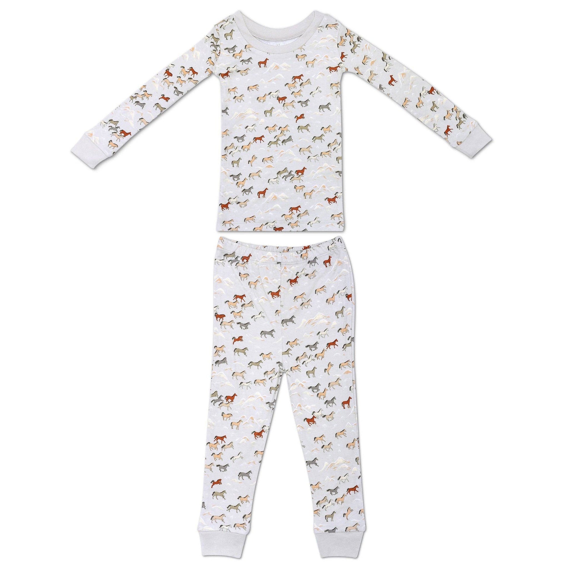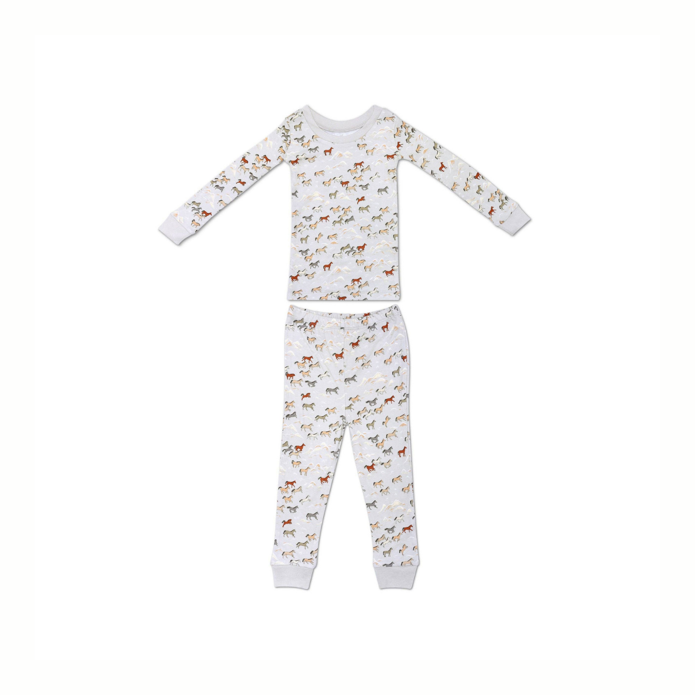 Snug fit, certified safe sleepwear in an adorable muted wild horse print. Made with bamboo and a 100% certified organic cotton blend.