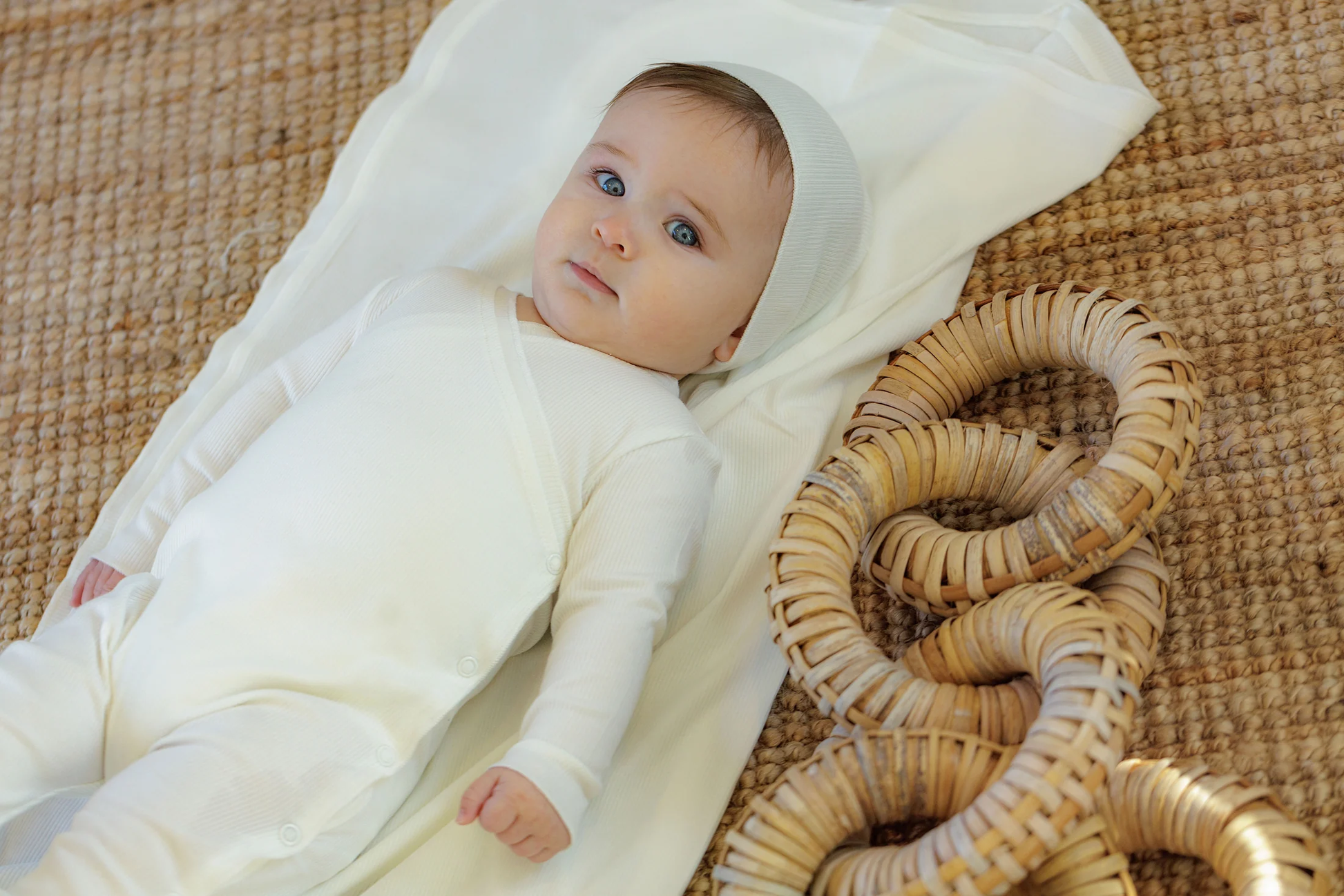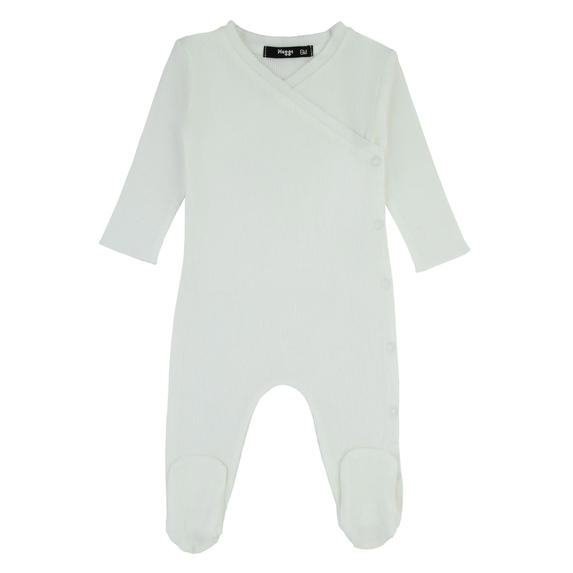 The Bamboo Ribbed Kimono Footie in Ivory is a soft and comfortable one-piece garment designed for infants. It features a kimono-style wrap design, making it easy to dress your baby without over-the-head dressing. The footie is made from bamboo ribbed fabric, known for its breathability and gentle touch on delicate skin.