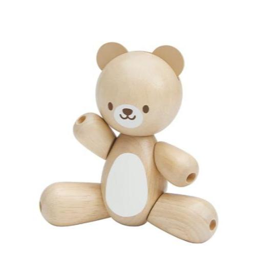 This adorable wooden bear can be a new friend for your little one. Babies can grasp, hold, and talk to the bear. The arms and legs are movable which helps to develop fine motor and communication skills.