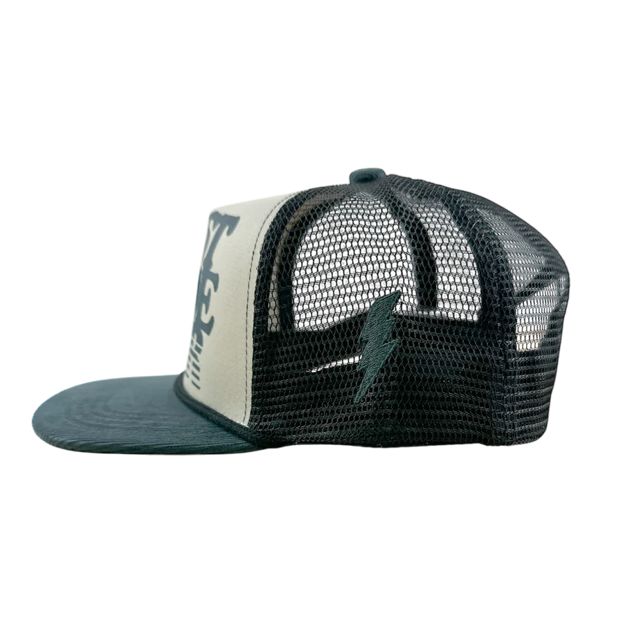 Designed with a classic trucker style, it includes a breathable mesh back and a flat bill for that laid-back, sunny-day vibe. The snapback closure ensures a comfy, adjustable fit as your dude grows