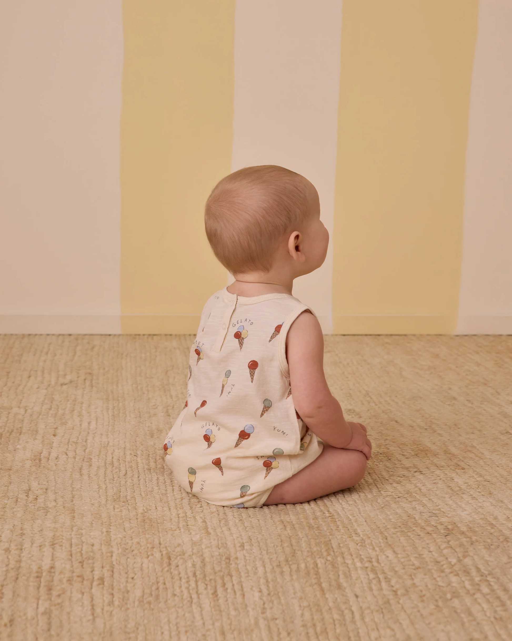 Introducing the Gelato Bubble, a stylish and comfortable rylee cru baby romper with a delightful gelato print. Made with soft material for ultimate comfort, this romper is perfect for your little one. Expertly designed for both fashion and functionality, it's sure to be a favorite.