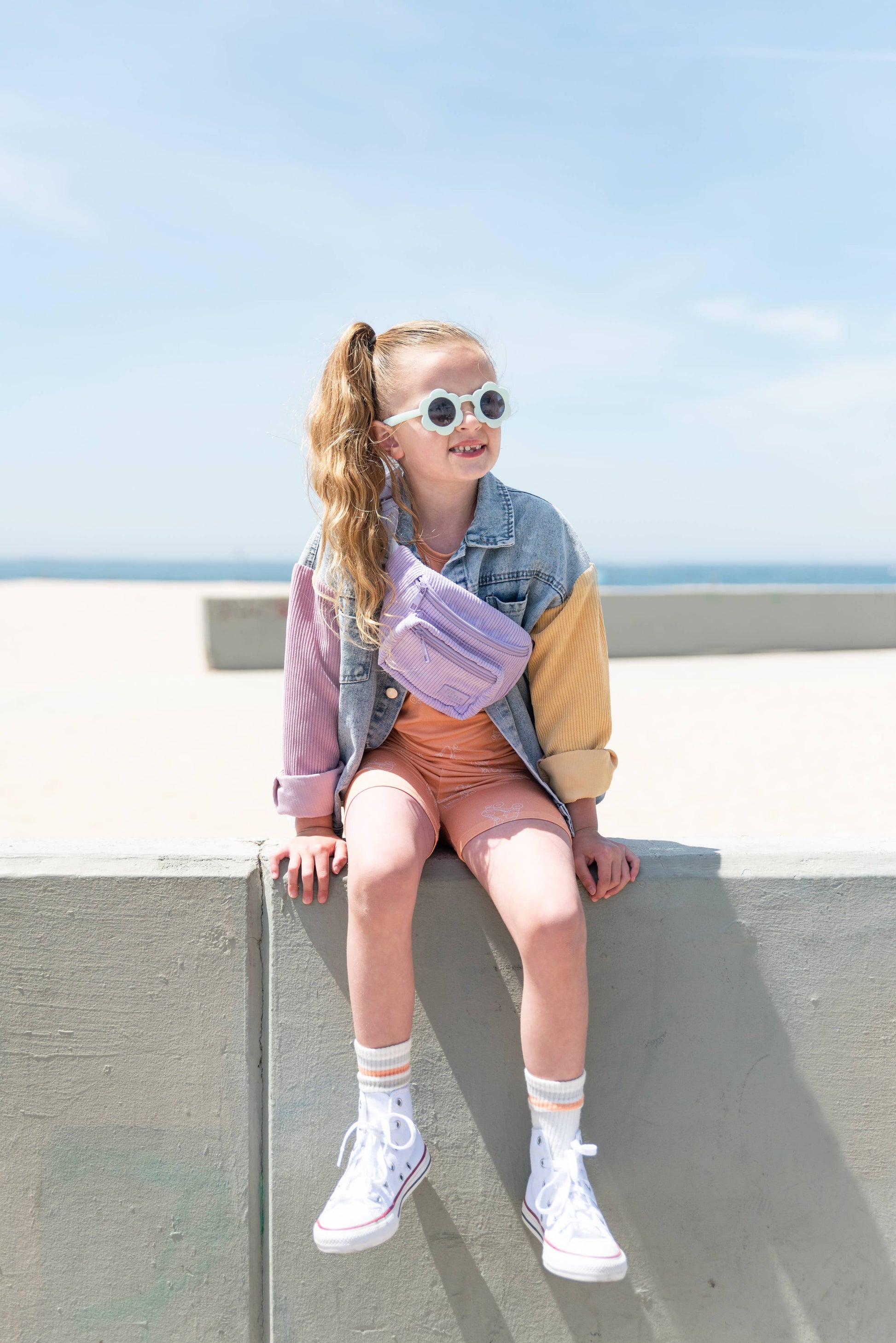 This soft corduroy child size waist bag fits lots of goodies! From legos to snacks, even a small doll! An adjustable strap makes it easy for your little ones to wear this bag around their waist as a toddler fanny bag or across their shoulder as a toddler crossbody bag.