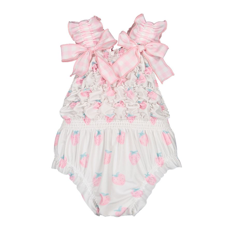 Crafted with comfort and quality in mind, it offers a snug yet flexible fit perfect for swimming, splashing, or simply lounging poolside in style. The classic silhouette pairs beautifully with the coordinating Strawberries Hat, available exclusively on our website for a perfectly matched look.