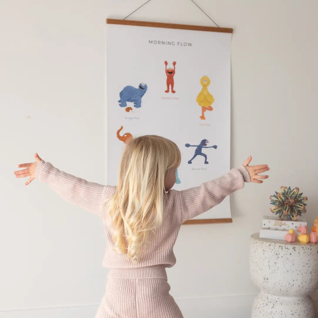 Make your child’s routine magical with this Double-Sided Sesame Street Yoga Poses Print! This colorful print brings energy to their mornings and calm to their evenings with two unique yoga flows.