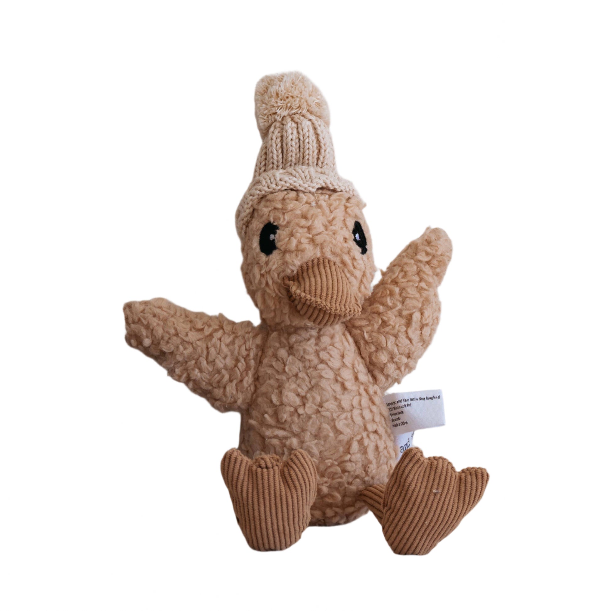 Meet your little one’s new best friend — a cuddly, curly-textured duck with corduroy legs and a cozy knit beanie. Perfect for snuggles, play, and comfort, this plush companion brings warmth and whimsy wherever it goes.