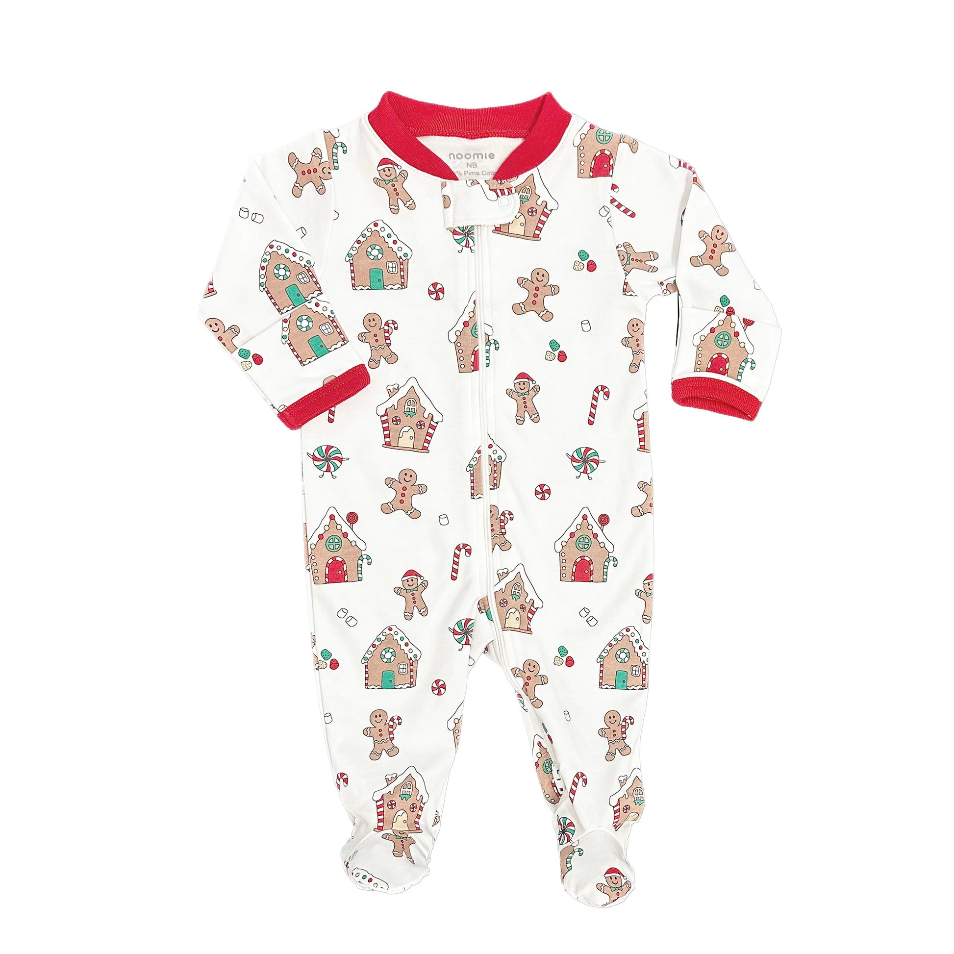 This baby zipper footie features a delightful holiday pattern of gingerbread cookies, candy canes, and festive treats, capturing the magic of Christmas. Designed to be gender-neutral, it's perfect for coordinating family outfits with our matching gingerbread kids' pajamas and dresses. Made from 100% soft, breathable, and hypoallergenic Pima cotton, this cozy onesie ensures comfort for your little one throughout the holiday season. A must-have for festive celebrations and memorable family moments!