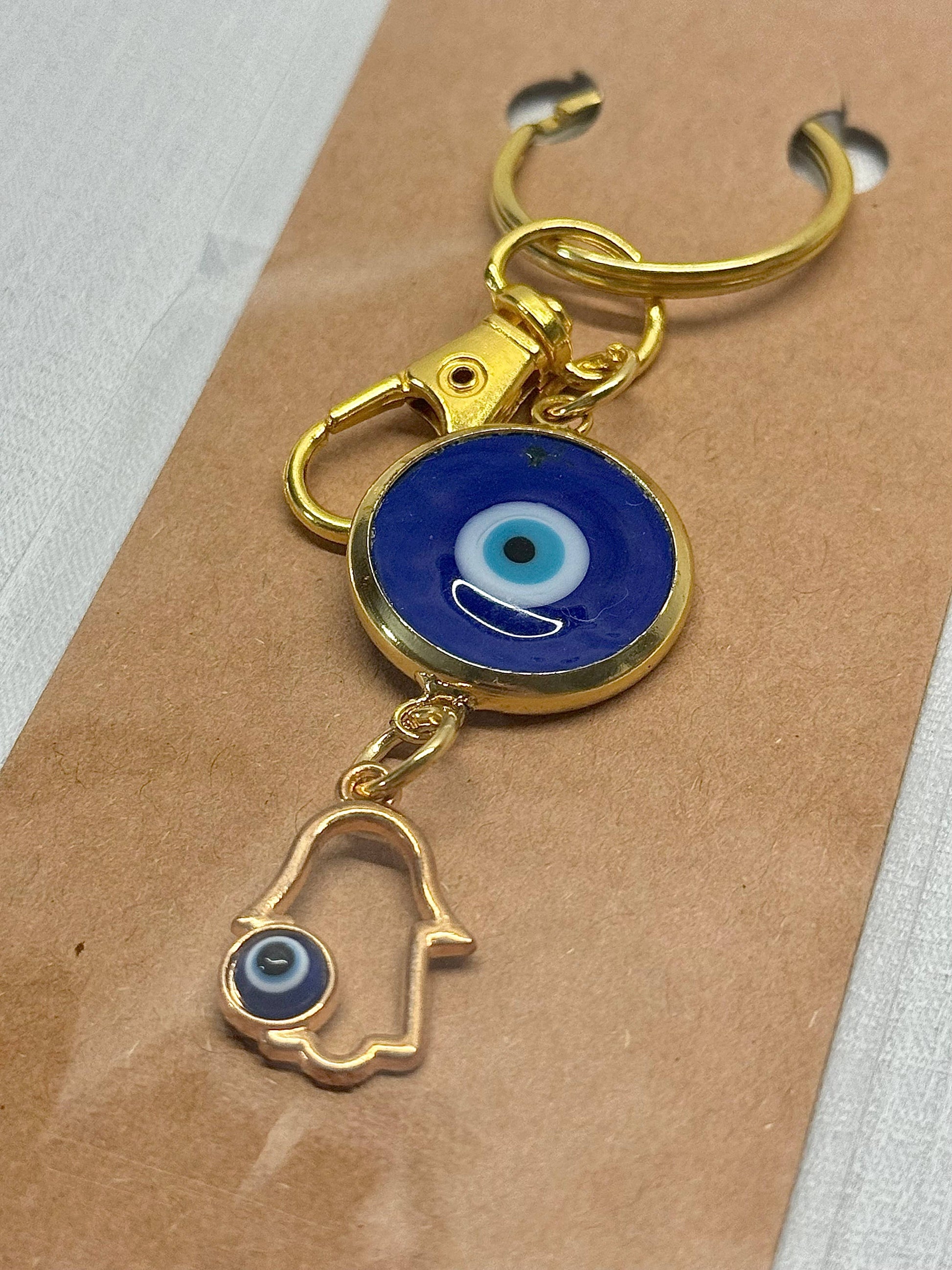 This Hamsa keychain is both stylish and practical, as it features a vibrant blue glass evil eye charm (for protection) and a durable metal lobster clasp for easy attachment to purses, diaper bags, backpacks, key fobs, and more. It's perfect for adding a touch of charm and meaning to your everyday essentials.