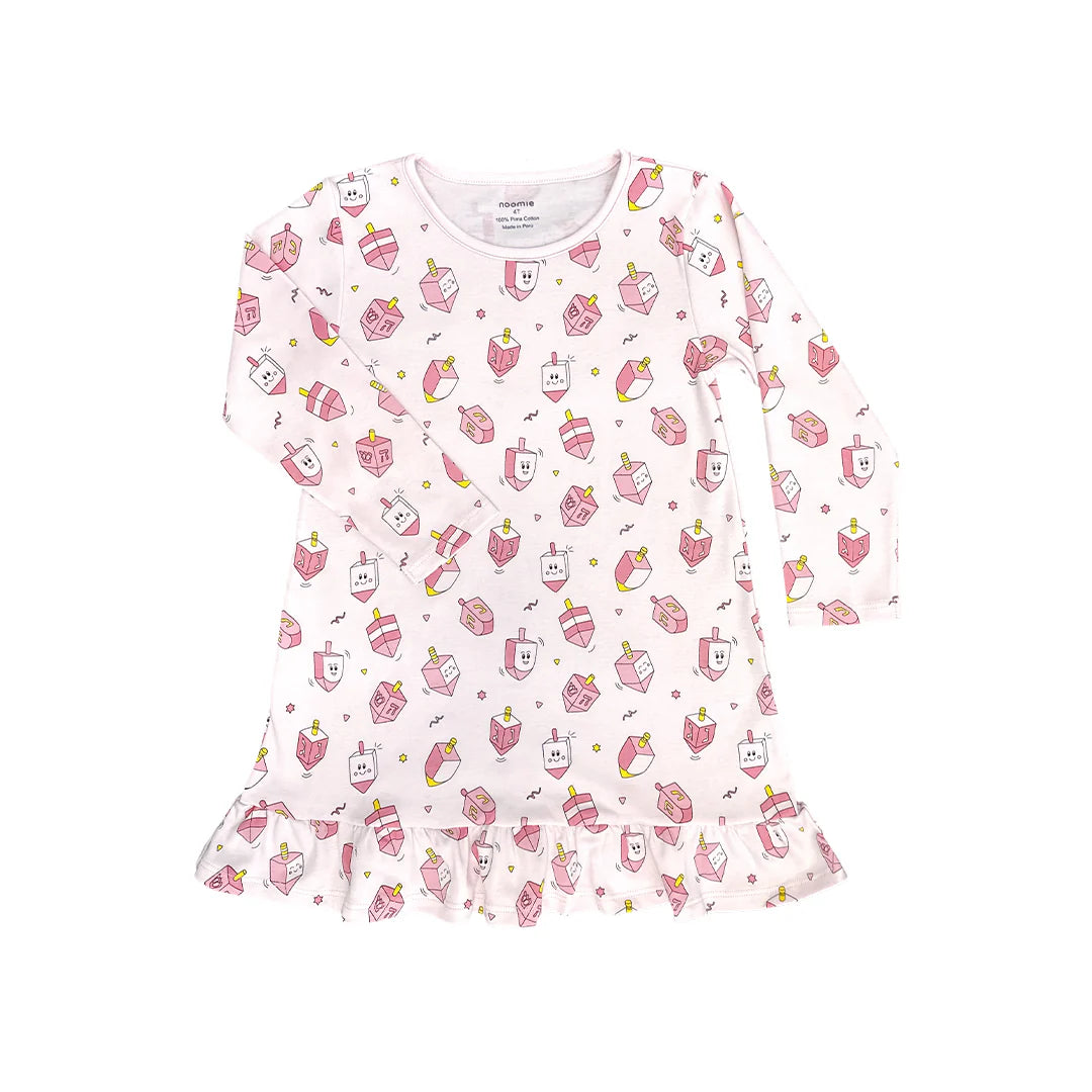 Get ready for festive fun with our Pink Dreidel Holiday Dress! This charming dress features a playful pattern of pink dreidels and is perfect for twirling through Hanukkah celebrations. Made from 100% premium Pima cotton, it’s luxuriously soft, breathable, and hypoallergenic, ensuring your little one stays cozy and comfortable. The ruffle hemline and long sleeves add warmth and style, making this dress a must-have for chilly holiday days. Designed for a relaxed fit, it’s ideal for movement and all-day wear. Perfect for creating memorable moments this Hanukkah season!