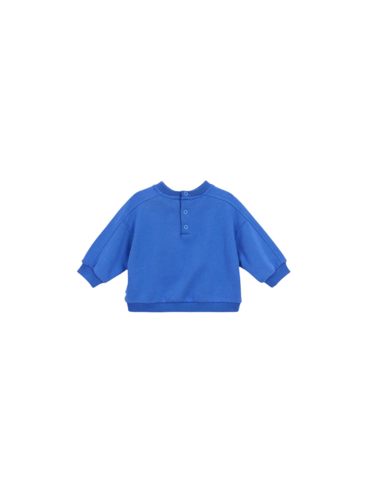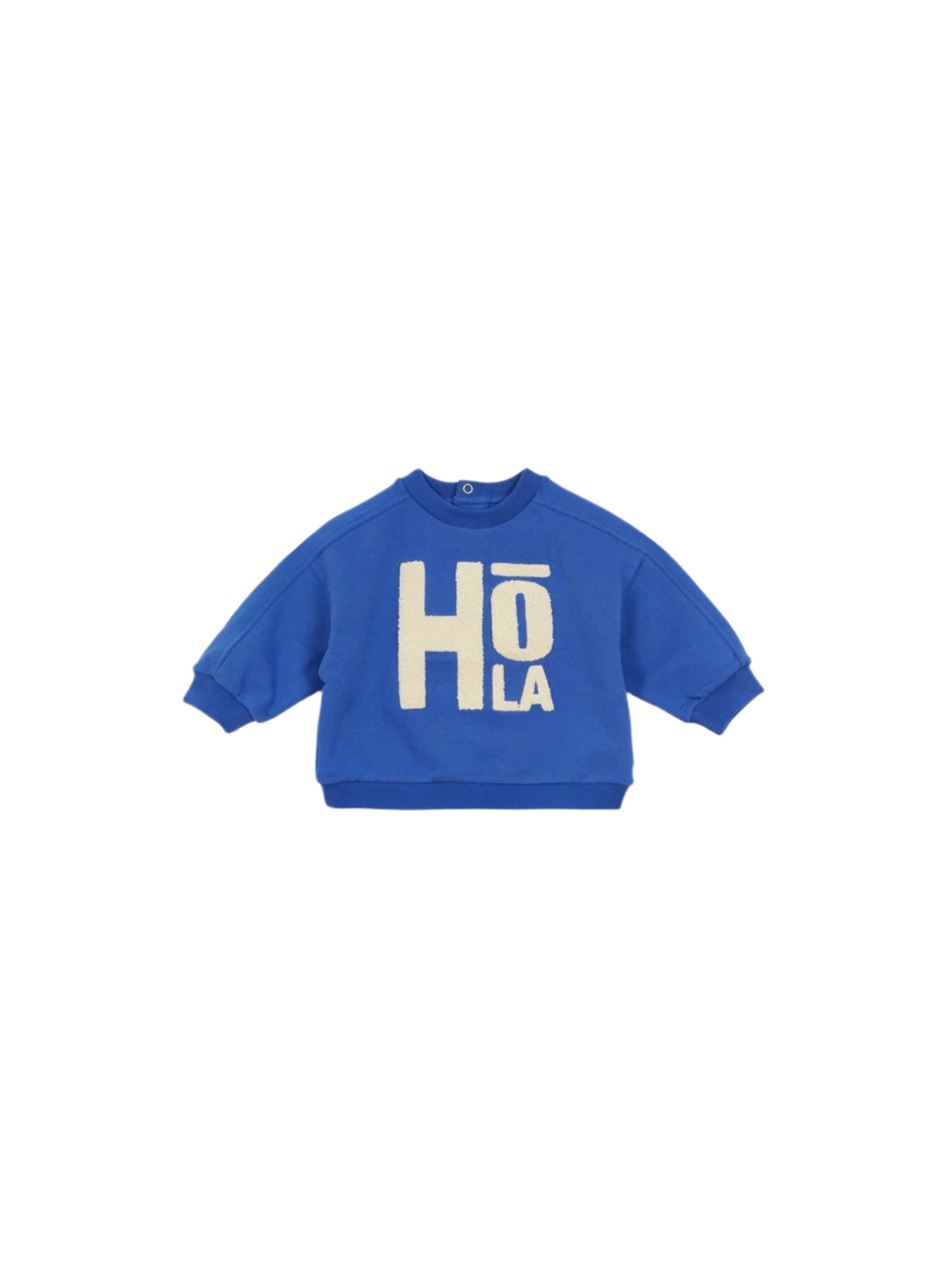 The Hola Baby Sweatshirt by Arsene is the perfect blend of comfort and style for your little one. Crafted from soft, organic, and sanded cotton fleece, it ensures warmth and coziness all day long. With a relaxed, loose fit and long sleeves, this sweatshirt features dropped armholes for an effortlessly cool look. The round neck and ribbed cuffs, bottom, and collar provide a snug, secure fit. The playful "Hola" loop embroidery at the center front adds a fun touch, while the convenient back opening with 3 snaps makes dressing easy. A small flag label sewn on the side completes this stylish and practical piece. Ideal for playdates, outings, and everything in between!
