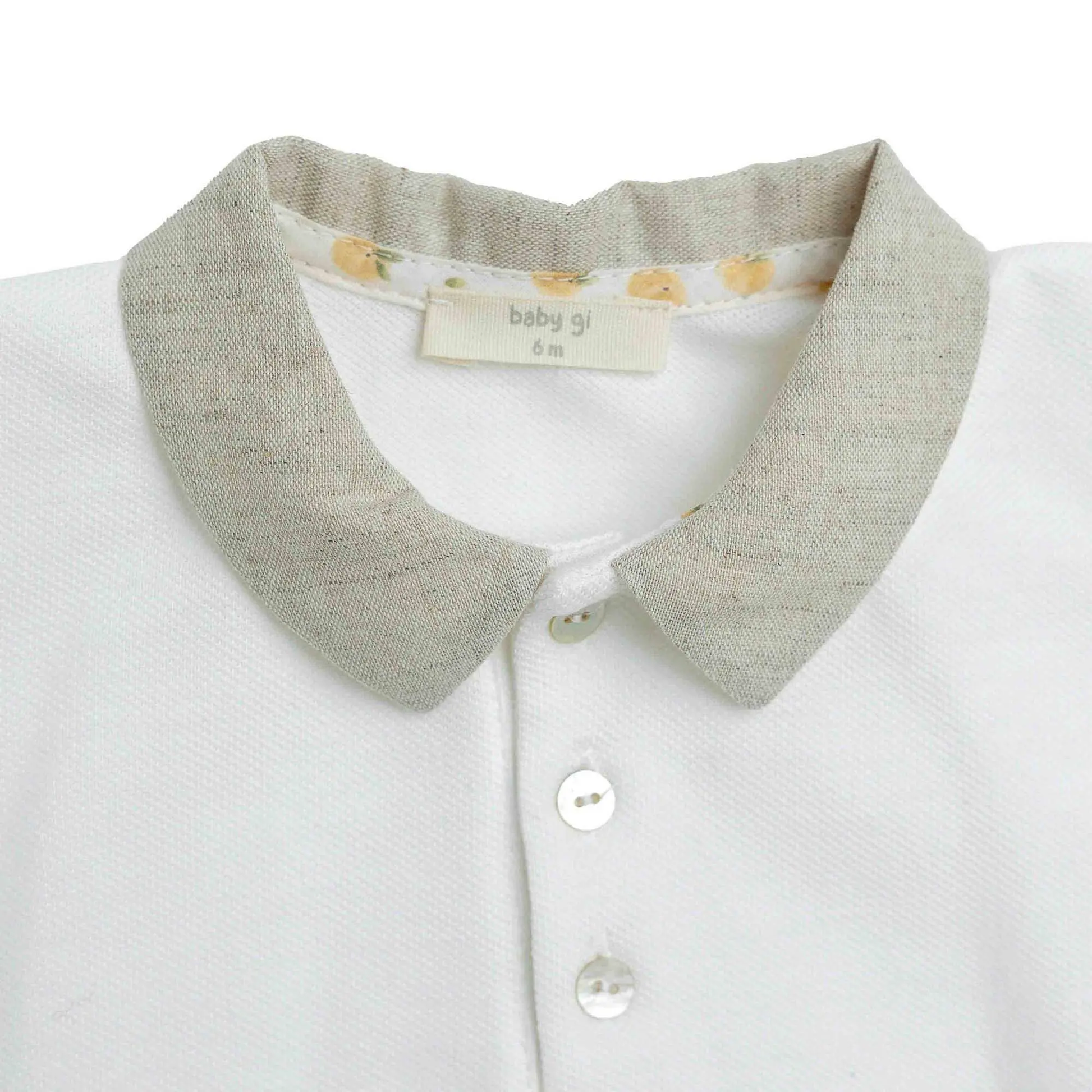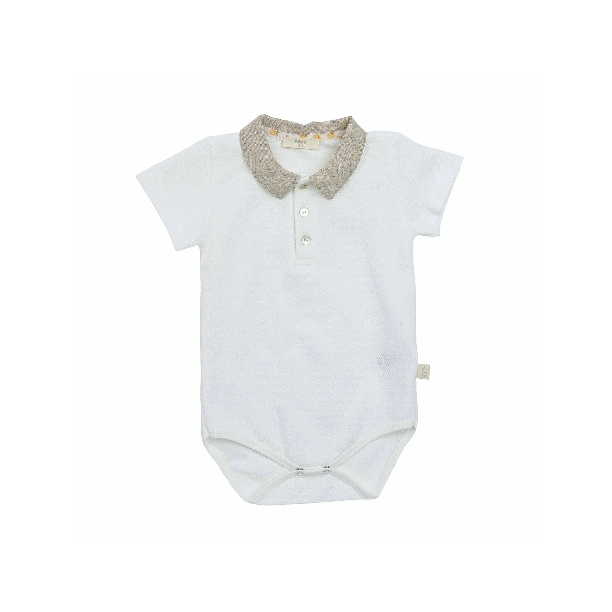 Wrap your little one in comfort and charm with the Ivory Collared Bodysuit .