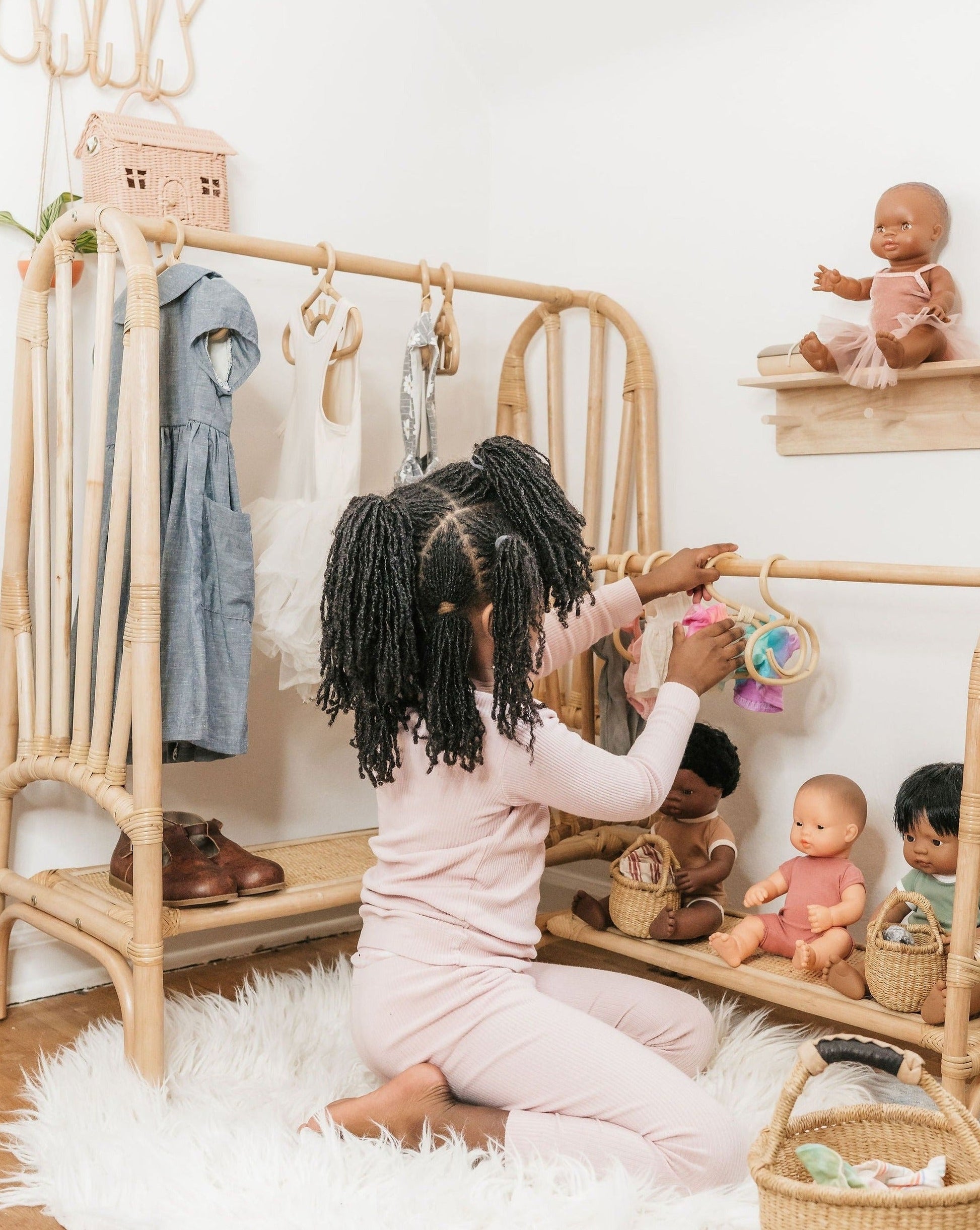 Little imaginations take flight when used for tangible play. They’ll adore playing dress-up, and you’ll love watching memories unfold. Designed to be adored, destined to be treasured, our sturdy, durable, and easy-to-clean, Kiara Kids Rattan Clothing Rack will stand up to hours of fun and generations of joy.