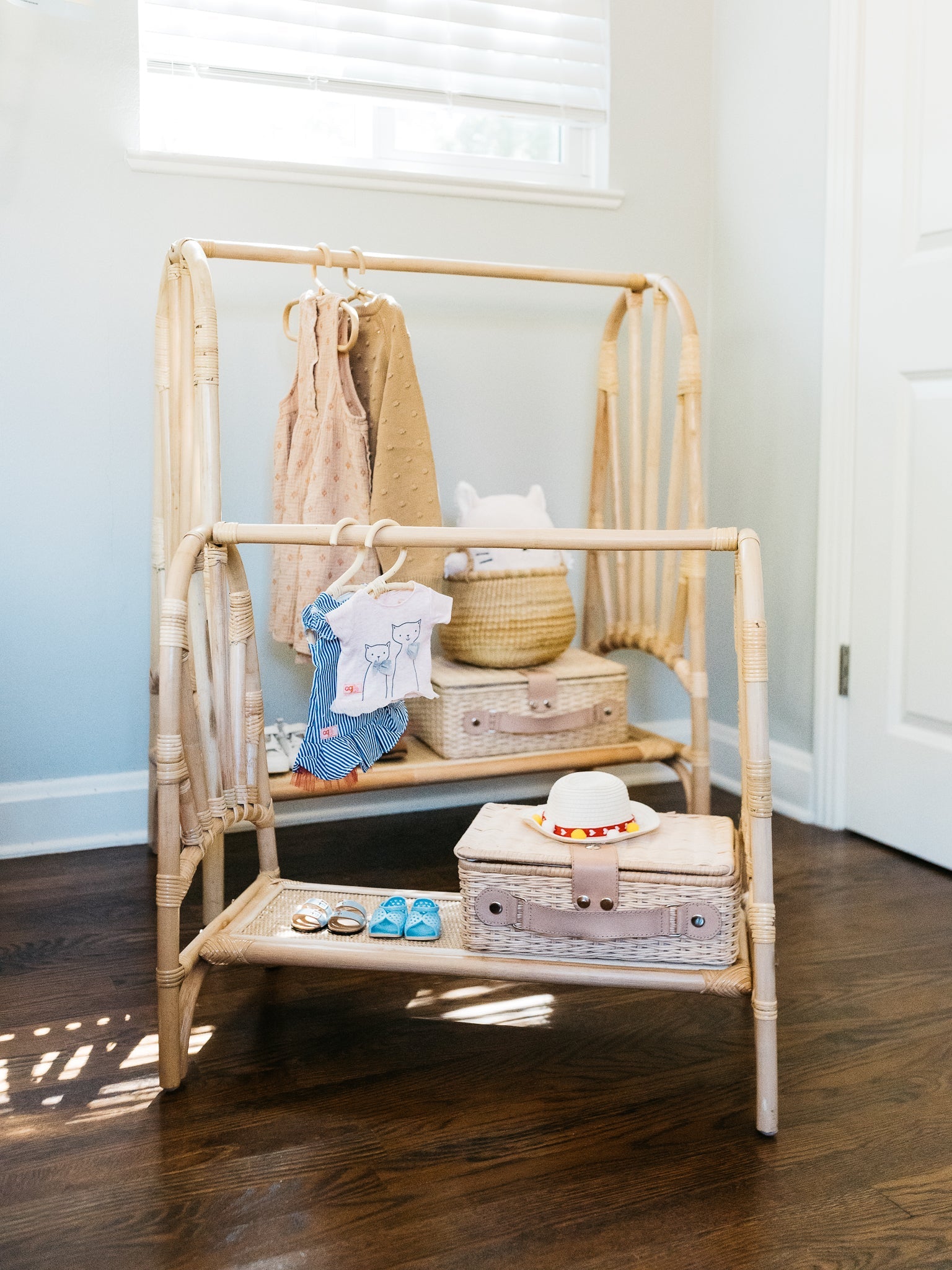 The only thing more adorable than this handcrafted rattan rack is the way your little one will look in the clothing it displays. Whimsical, beautiful, and made to last. Showcase pretty party clothes, display fancy footwear, and organize precious accessories.