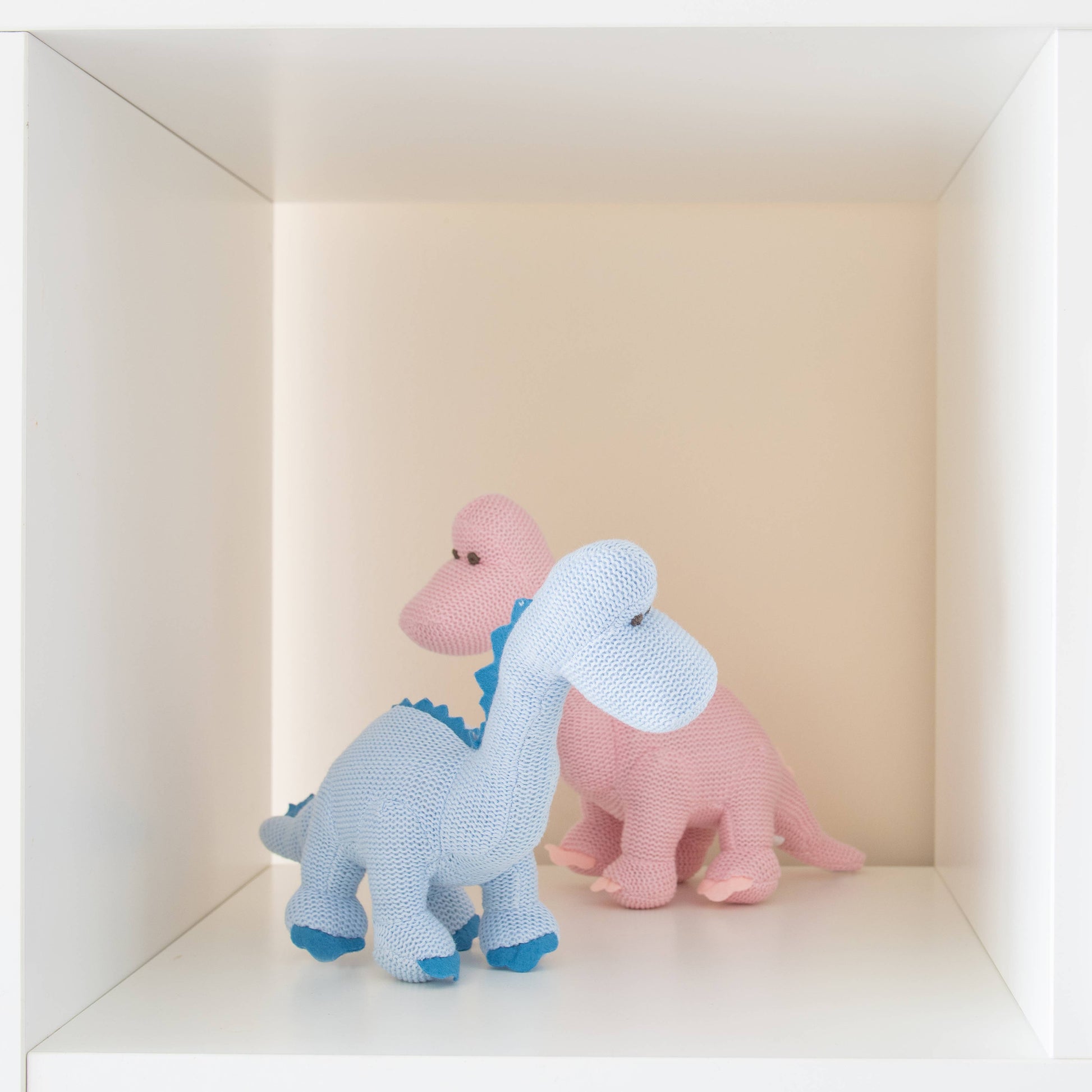 You can't get dinosaur toys much sweeter than our pastel diplodocus baby rattles --available in blue and pink. Tactile, and with a sweet-sounding rattle, it makes a great gift for young babies.
