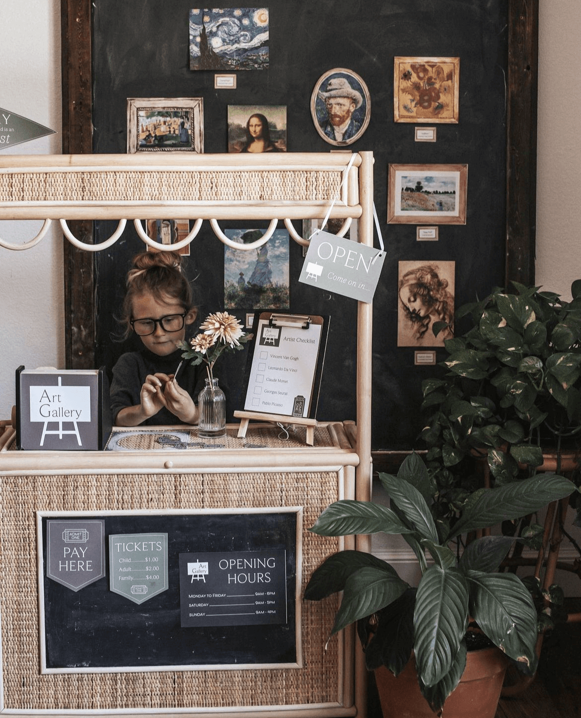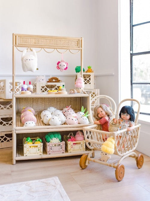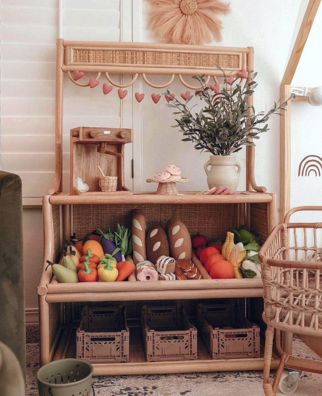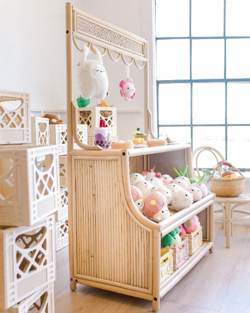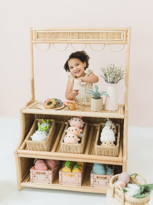 The opposite side features a chalkboard — perfect for doodling or a lemonade stand set-up. Whether they're a little barista, pastry chef, grocer or crafter, this Little Shop Stall is the perfect piece to let their creativity flow for hours of pretend-play.