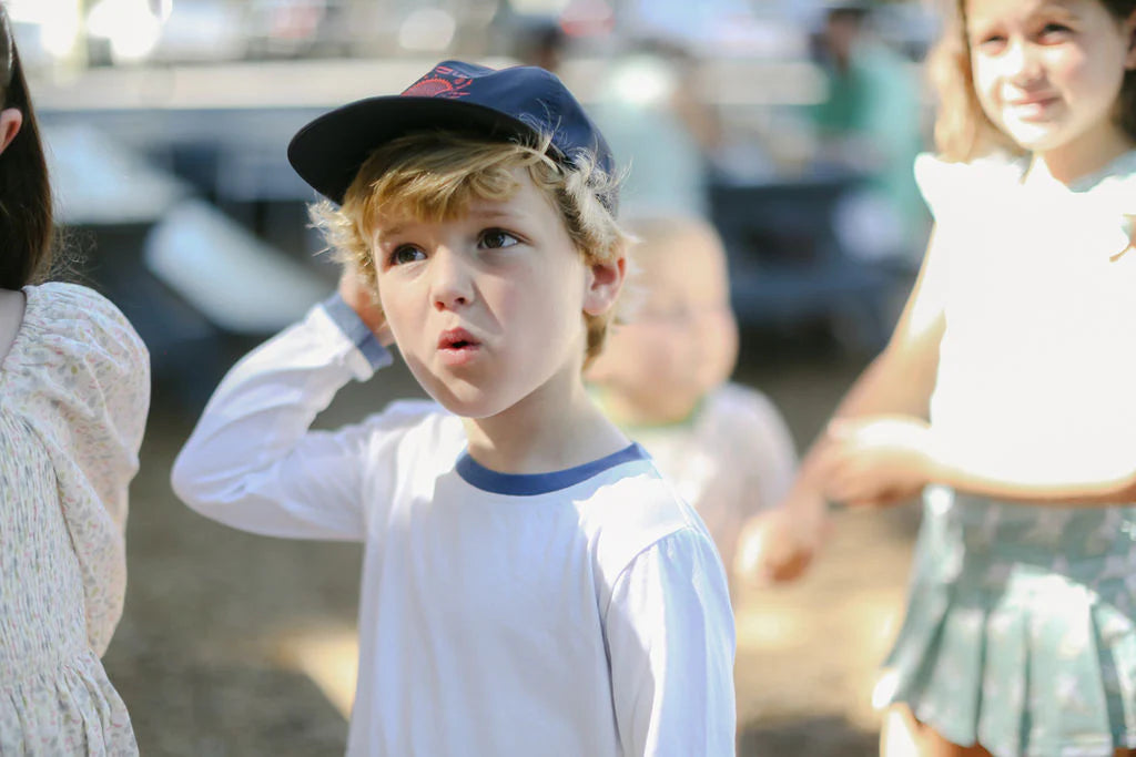 Discover the perfect blend of comfort and style with this white ringer t-shirt featuring a chic blue trim on the neckline and sleeves. Made from soft, breathable fabric, this timeless tee is ideal for kids' beach days, playdates, or everyday wear. Pair it effortlessly with any outfit for a casual yet polished look. A must-have wardrobe staple for active little ones. Shop now for the perfect kid's ringer t-shirt!