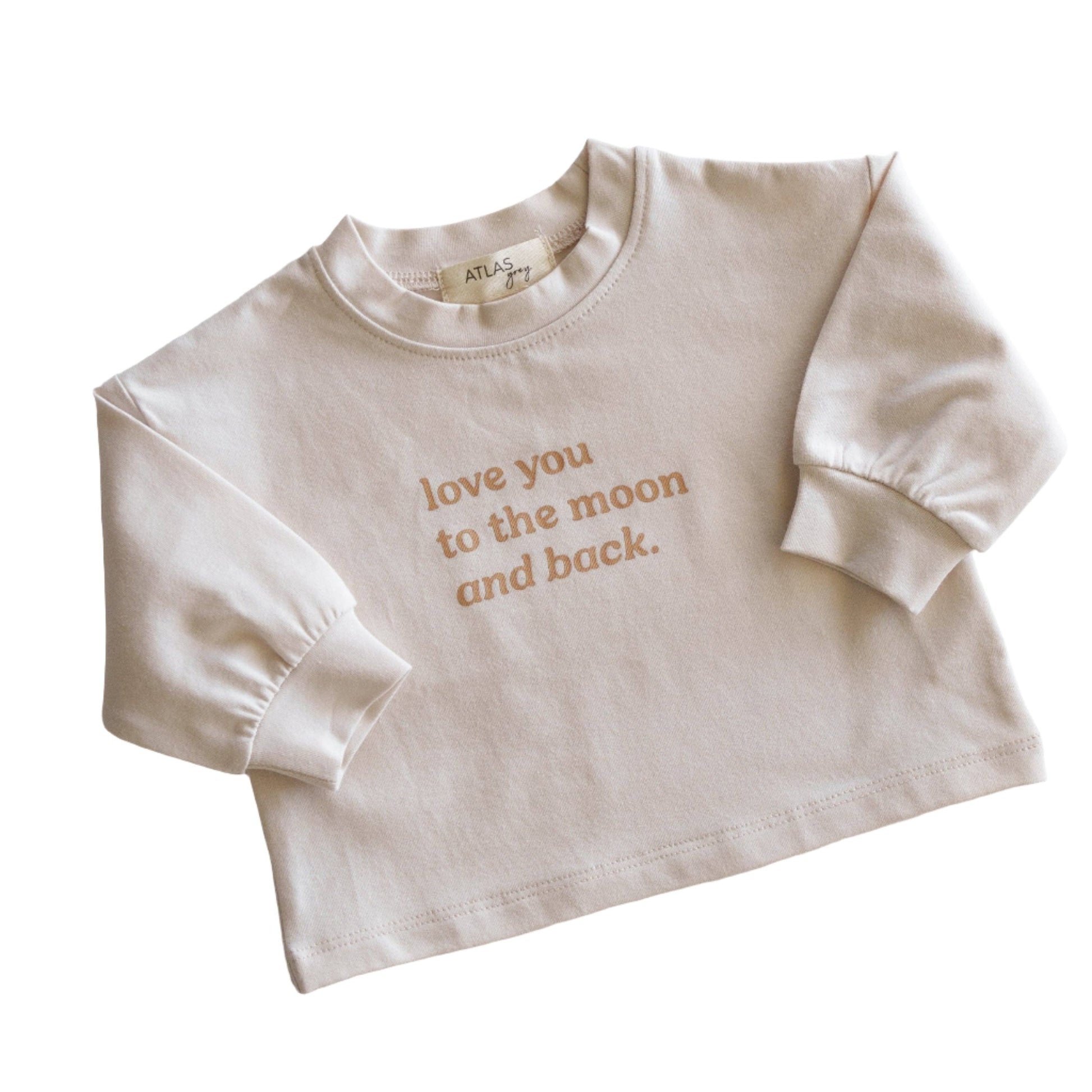 This lightweight long-sleeve t-shirt is made with the purest organic cotton for unmatched softness. The charming declaration "love you to the moon and back" is emblazoned on the front -- a sweet testament to the boundless love shared between you and your baby.