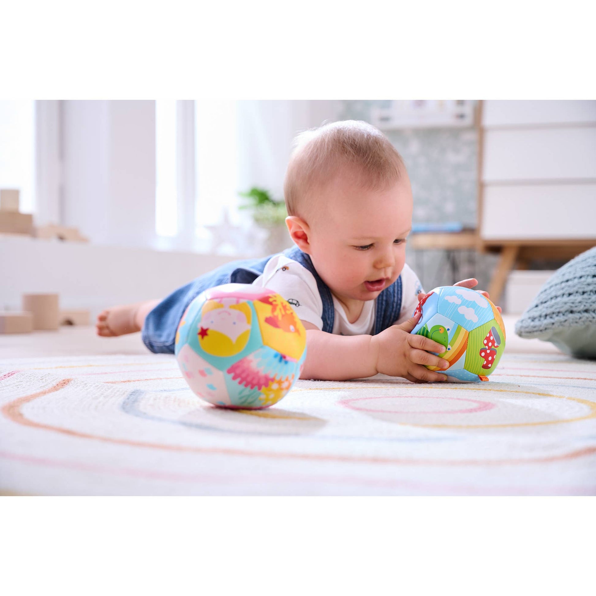 Discover the Mermaid Baby Ball, which features many sea creatures in bright colors. It is 4.5 inches in diameter -- perfectly sized for tiny hands and enchanting playtime adventures.