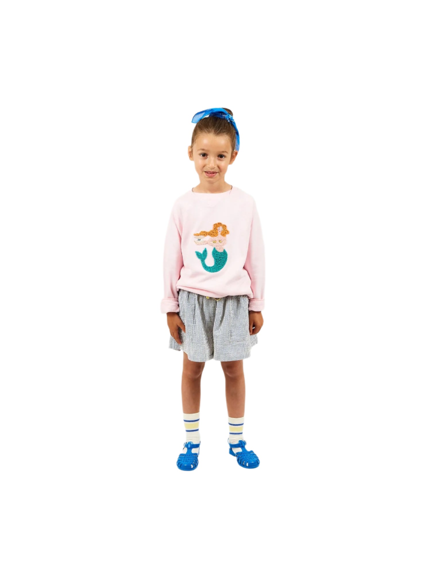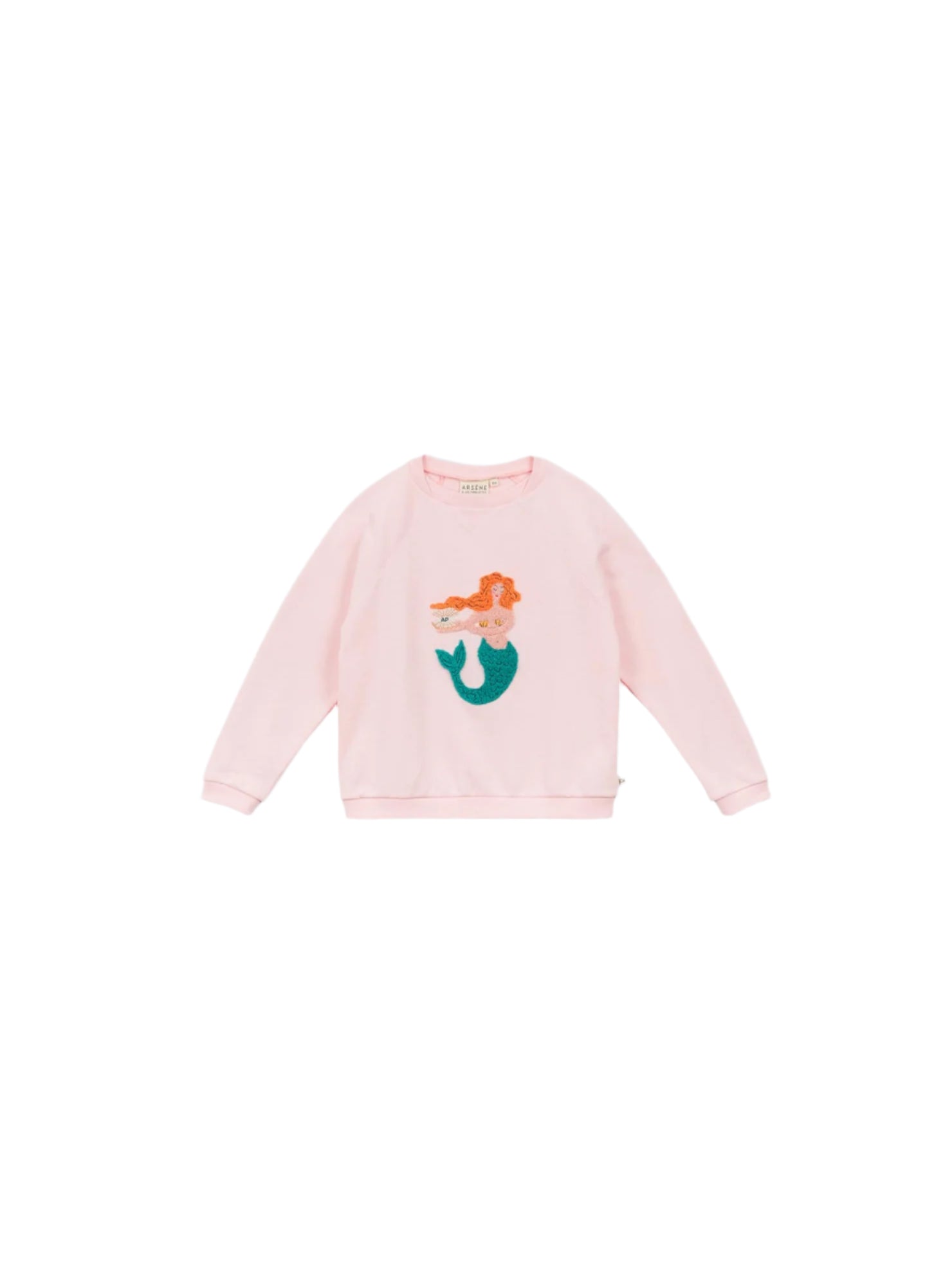 The Mermaid Fleece Sweatshirt from Arsene is a cozy and stylish choice for your little one. Made from soft, organic milled cotton fleece, this sweatshirt offers ultimate comfort for chilly days. Designed with a relaxed fit, it features a round neck with a ribbed edge and “V” stitching finish for a subtle touch of detail. The "Mermaid" embroidery at the front adds a whimsical touch, while raglan long sleeves provide a relaxed, comfortable feel. Ribbed cuffs, collar, and lower body offer a snug fit, and a small flag label sewn on the side completes the look. Perfect for casual days or layered over other outfits, this sweatshirt is as cute as it is comfy.