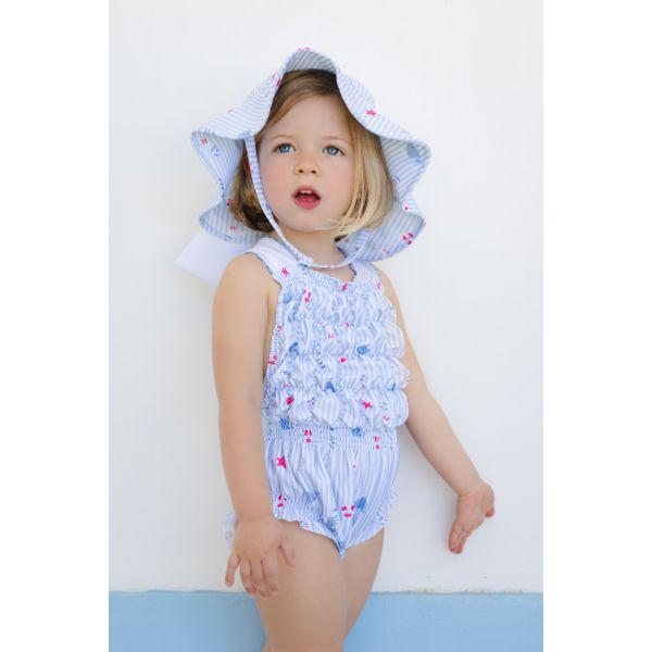 The Nautical Frilled Swimsuit is a charming one-piece designed for little sailors. Featuring delicate frilled details and a playful nautical theme, it combines comfort with classic seaside style. Perfect for beach days or poolside adventures, this swimsuit ensures your child stands out with elegance and fun.