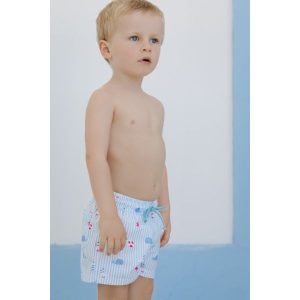 These classic boys' swim trunks from Sal & Pimenta are perfect for seaside adventures and summer fun.