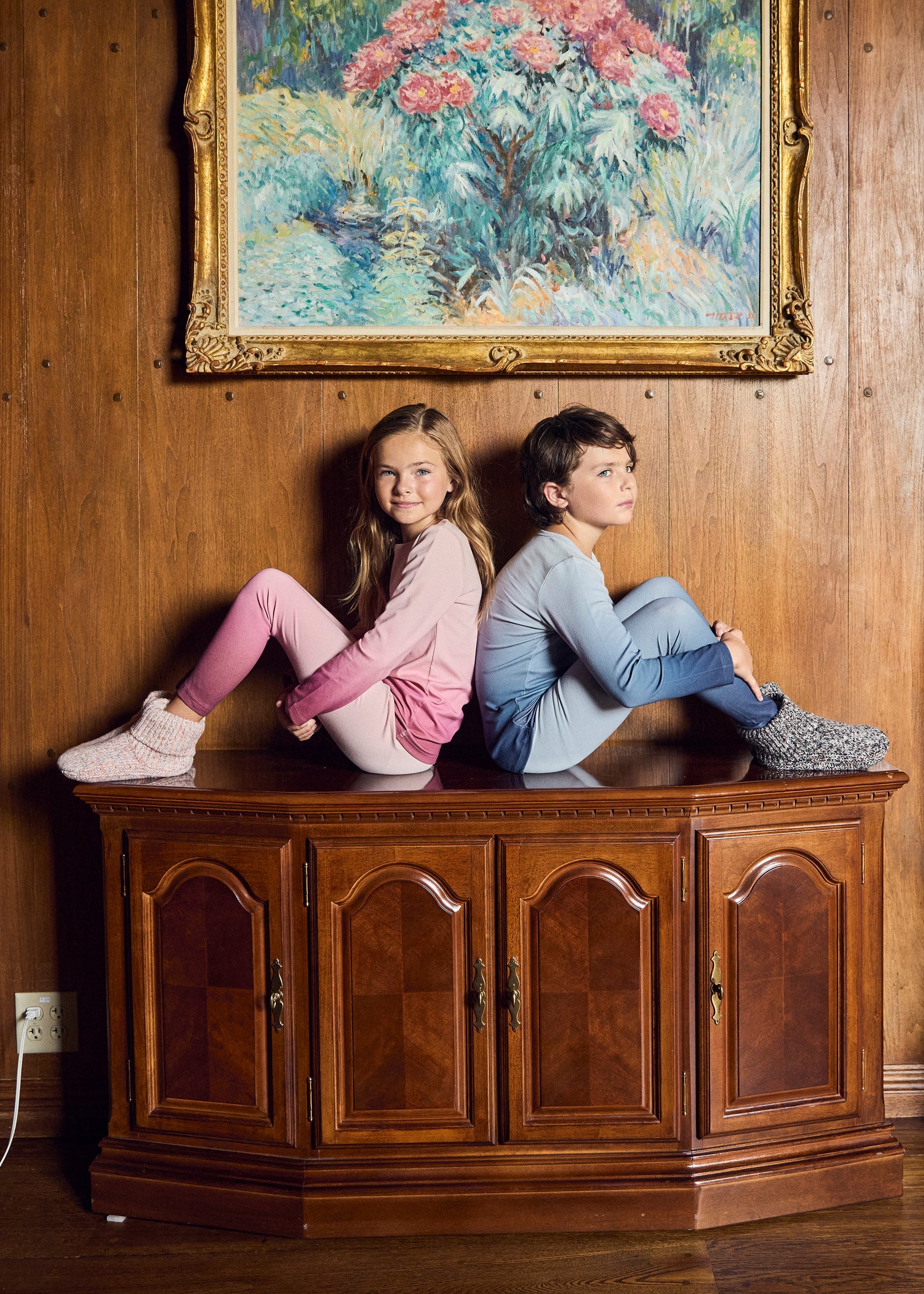 This two-piece loungewear set is loved by babies and toddlers for its fun ombre color way and super soft material. Available in pink and blue.