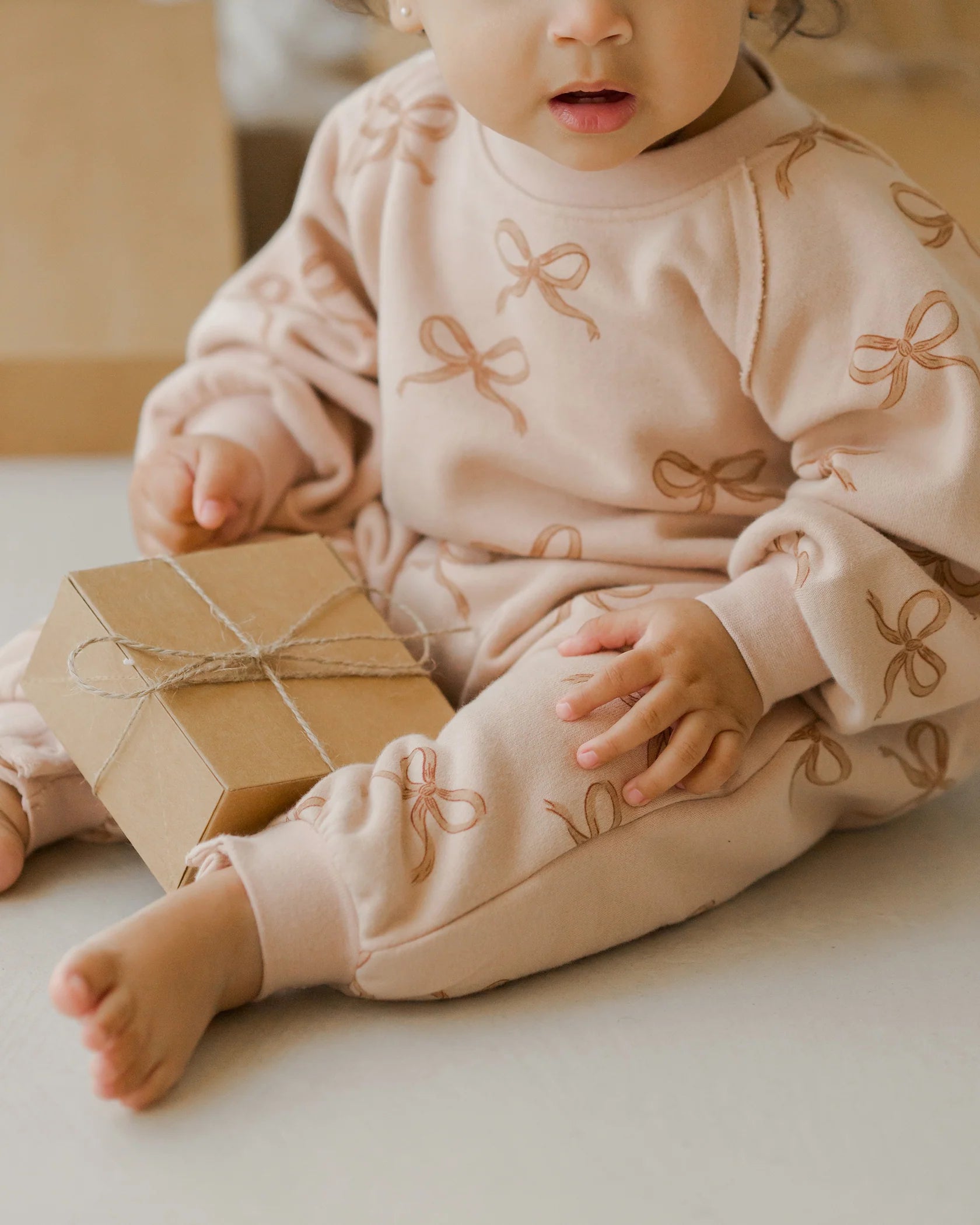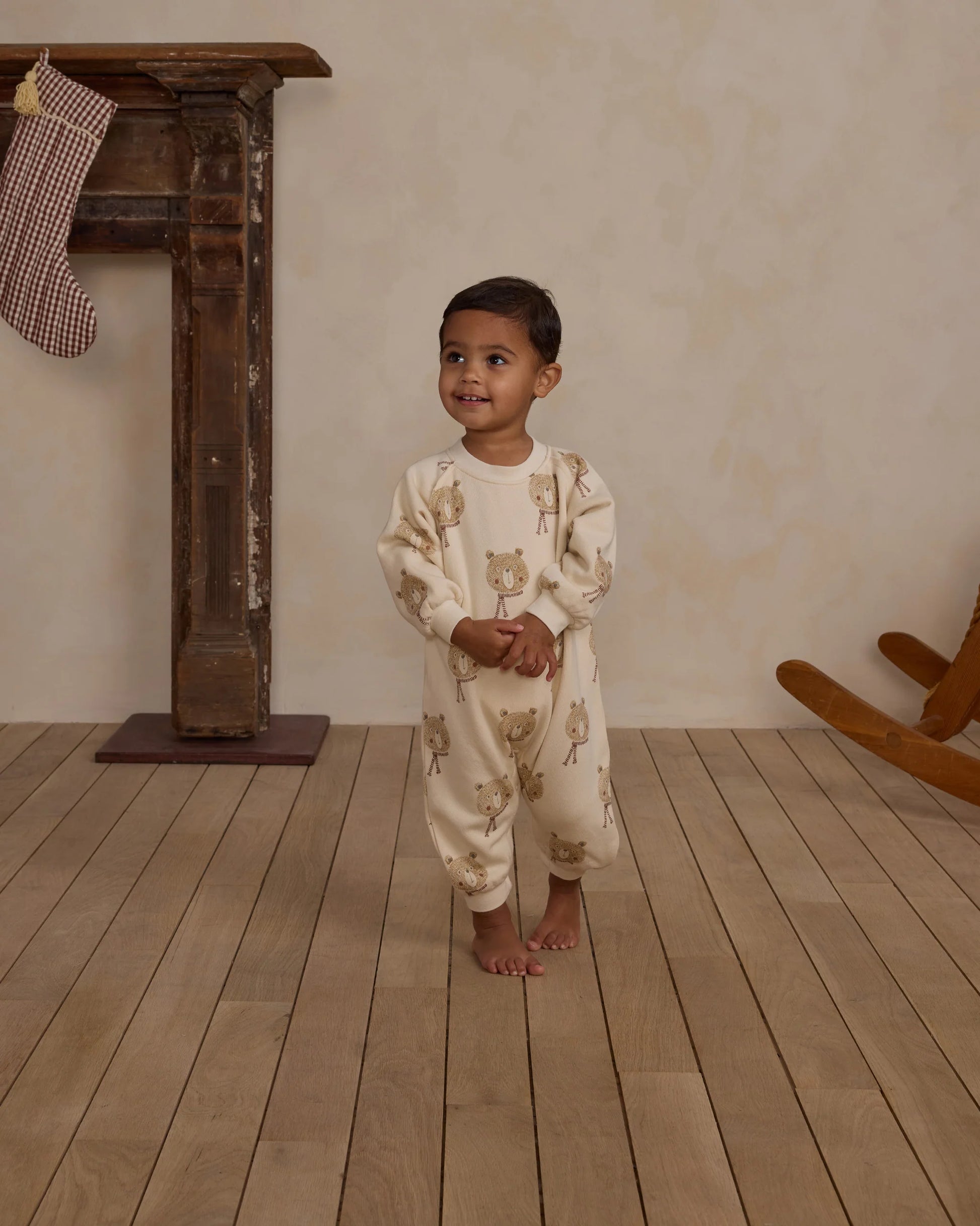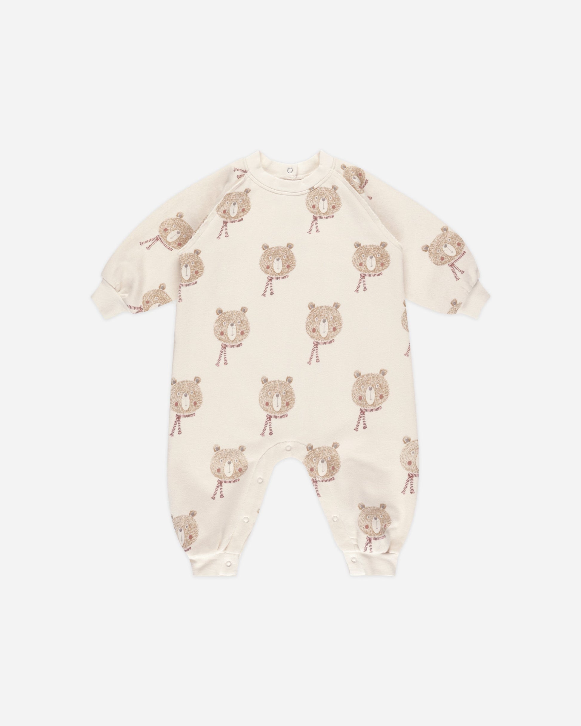 This long sleeve bubble romper is made in the softest French terry fabric. It features elastic leg openings as well bottom snap closures.