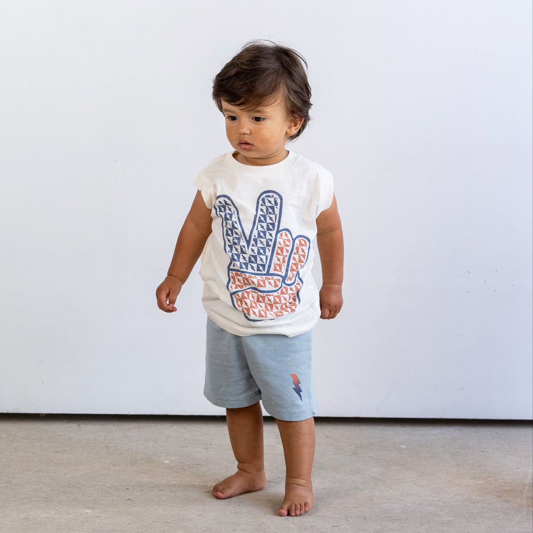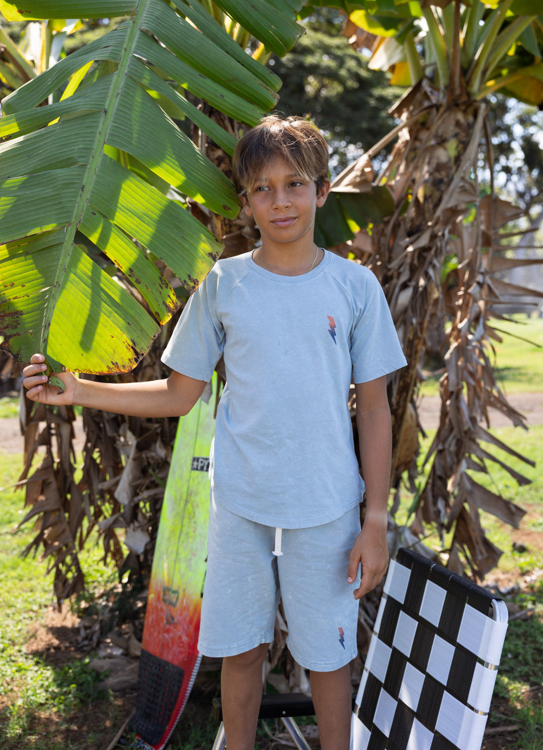 Give your little one the ultimate in comfort and style with these Raw Power Acid Washed Boy Shorts. Made from 100% cotton French terry, these sweat shorts are incredibly soft, breathable, and gentle on sensitive skin, making them perfect for all-day wear. The acid-washed mineral stone blue color offers a trendy, laid-back look while the durable fabric ensures long-lasting wear.