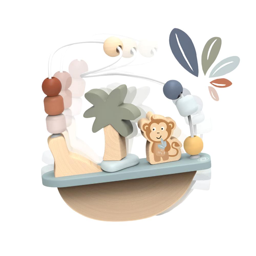 This soft-colored wooden monkey bead maze rocks gently from side-to-side and twists and turns around and around. There are seven beads for little fingers to slide across -- helping to develop dexterity and coordination.