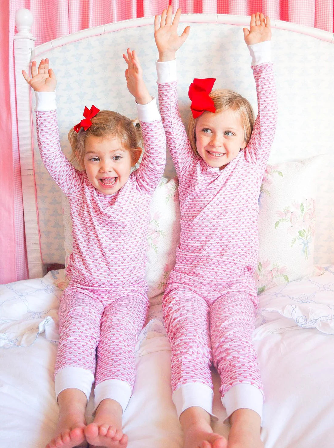 This beautiful print is a combination of two of our favorite things - stripes and hearts, because who doesn't love a bit of print on print? These long sleeve and pant pajamas will help fill hearts with love this Valentine's Day and beyond.