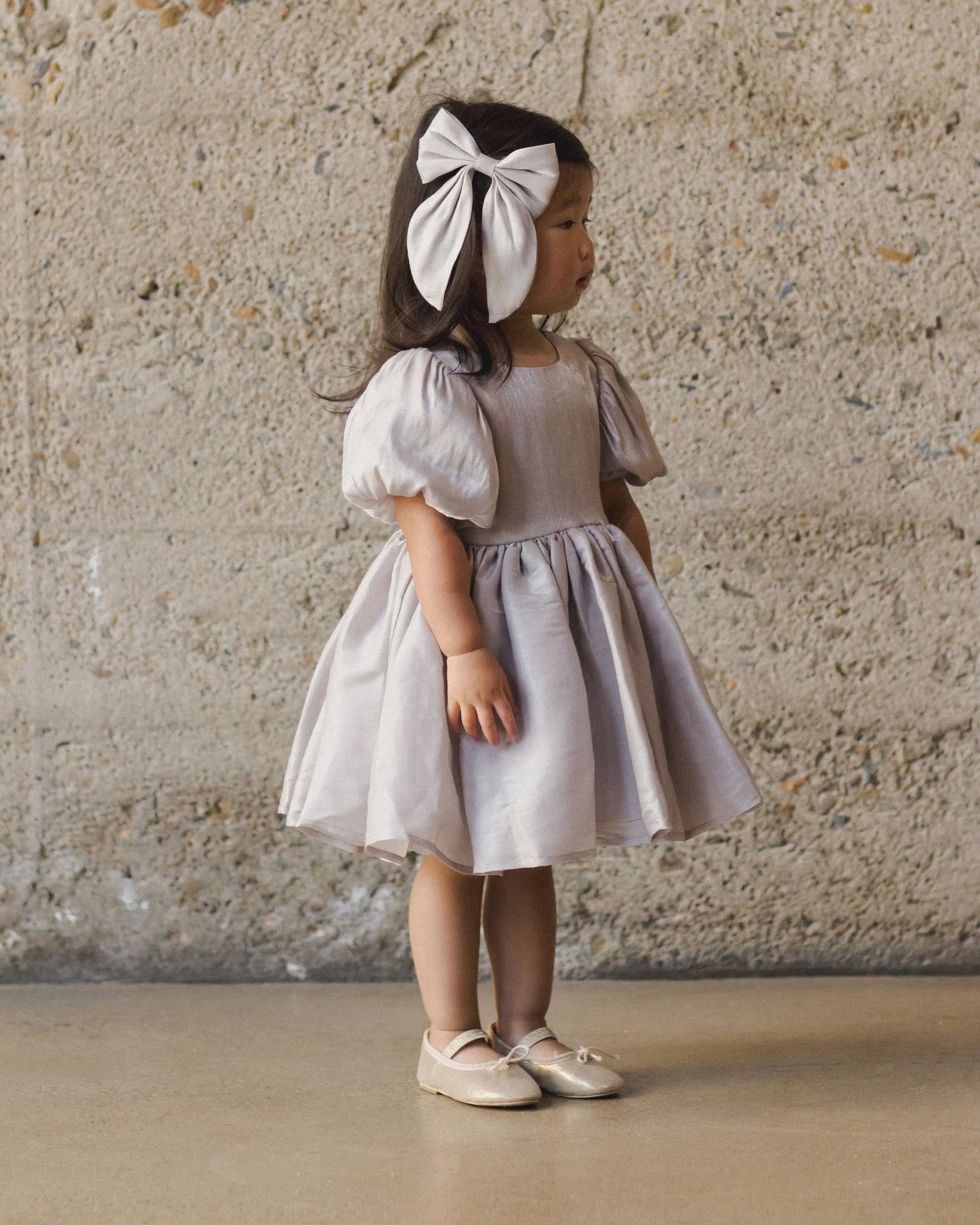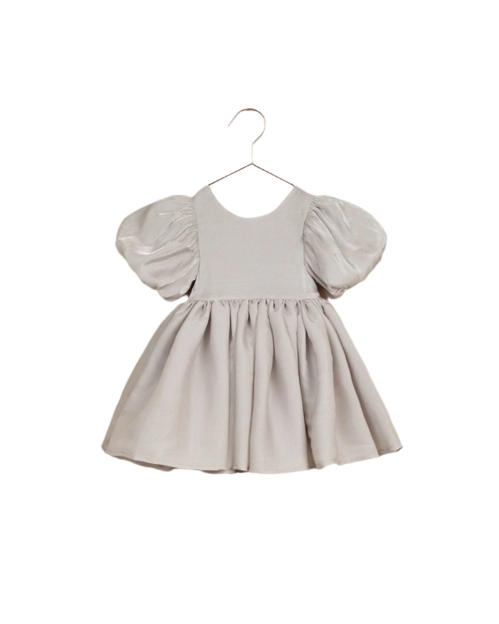 This dress is perfect for holidays and special occasions. The Sofia dress features an elegant Frost organza material with a V-back detail and zipper. The oversized balloon puff sleeves and layered organza tulle skirt make this dress extra special and perfect for twirling!