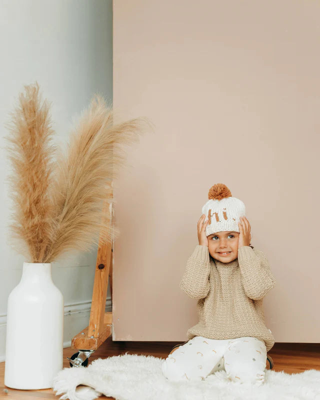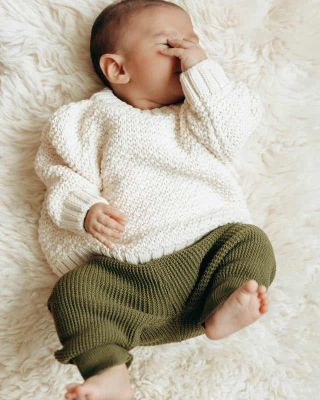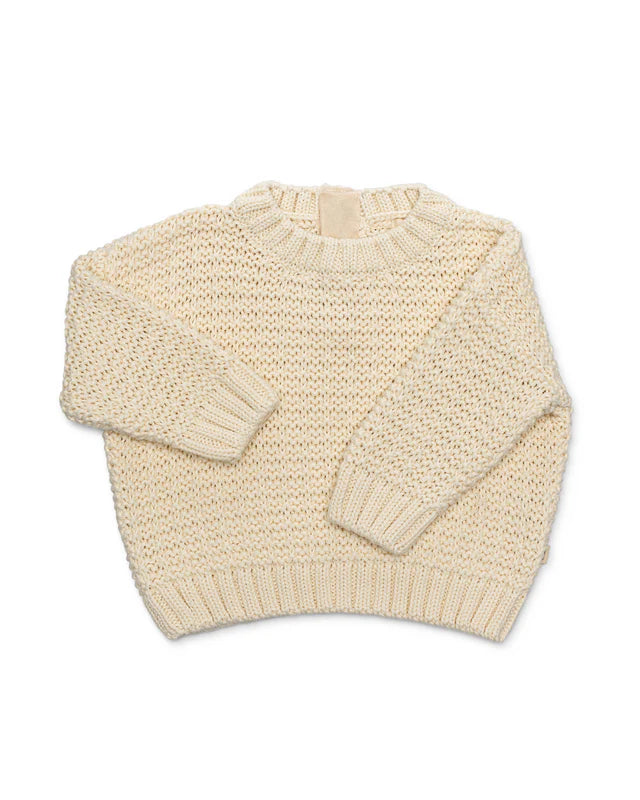 The most perfect crew neck sweater! It features a cozy, oversized fit, a “squiggle stitch” on the body with rib knit detail on the cuffs, hem, and collar. Wood buttons at the back of the neck add a sweet and special touch.