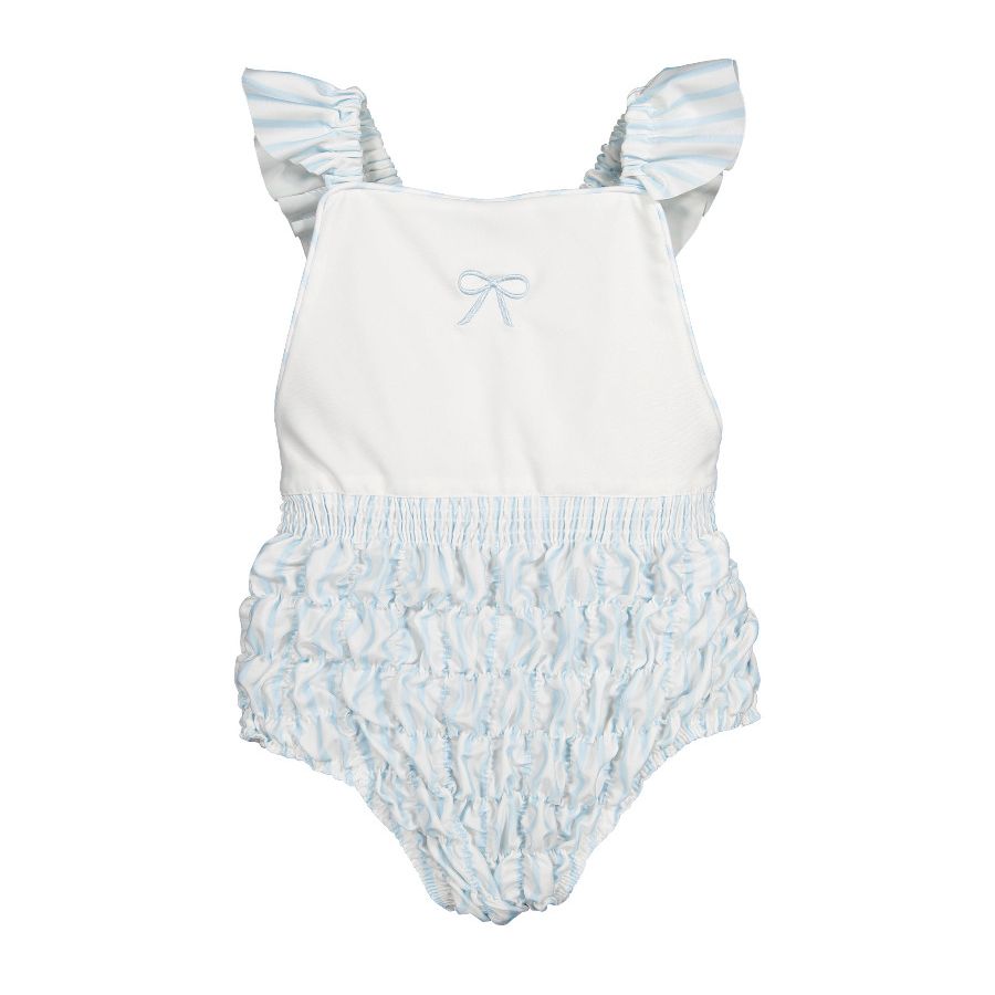 Sweet, timeless, and oh-so-charming — the Stripes Blue Frilled Swimsuit is made for sunny days and seaside memories. Featuring an all-over blue stress print and finished with soft frilled edges, this swimsuit captures the innocence and joy of childhood summer adventures.