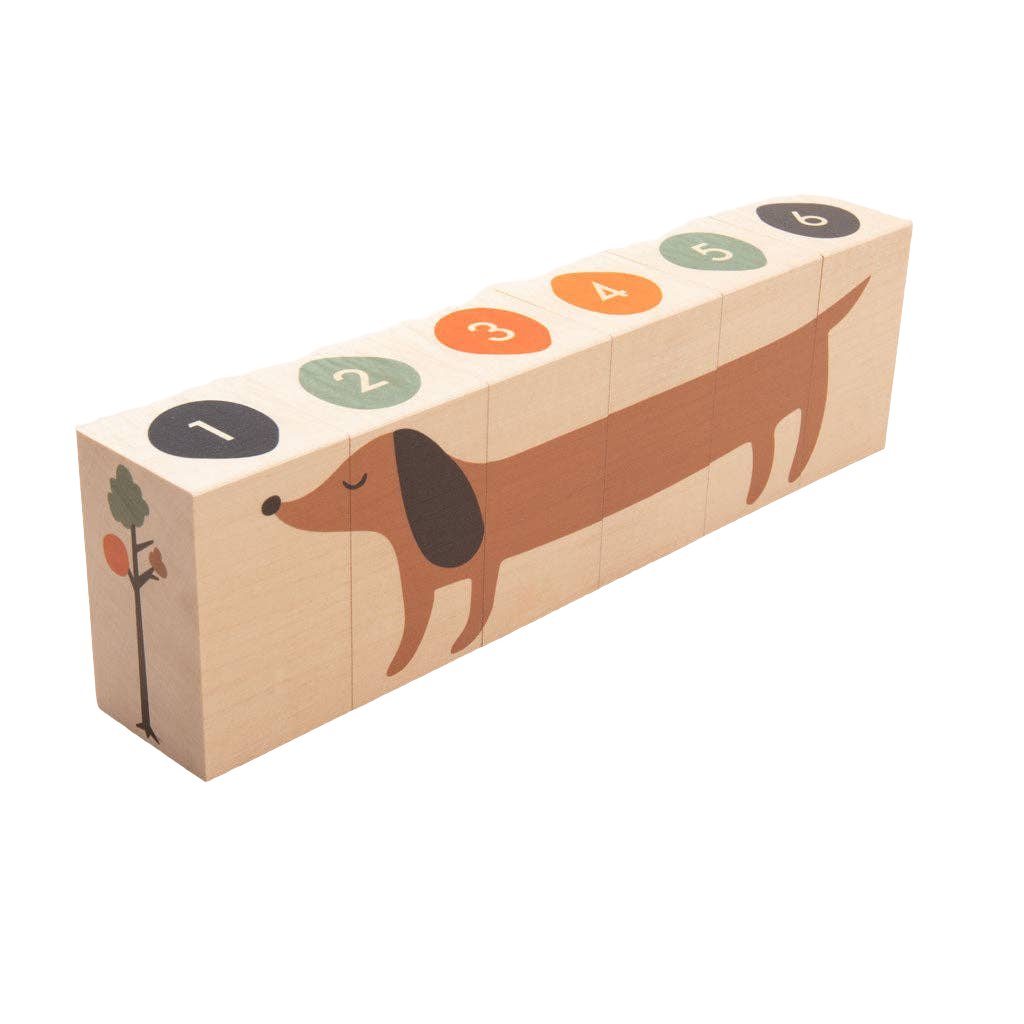 This artful block set is fun for playing, learning, and displaying! Explore the neighborhood environment, count the houses, and put the dog puzzle together.
