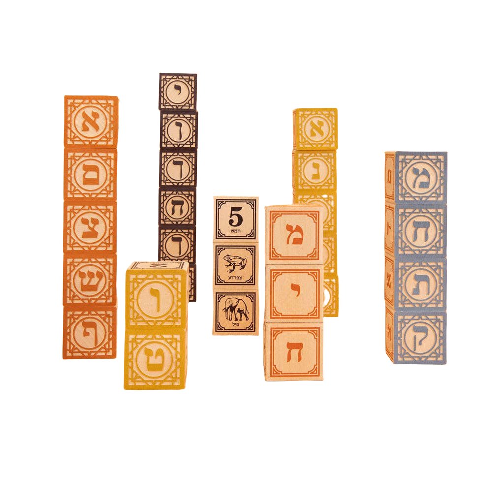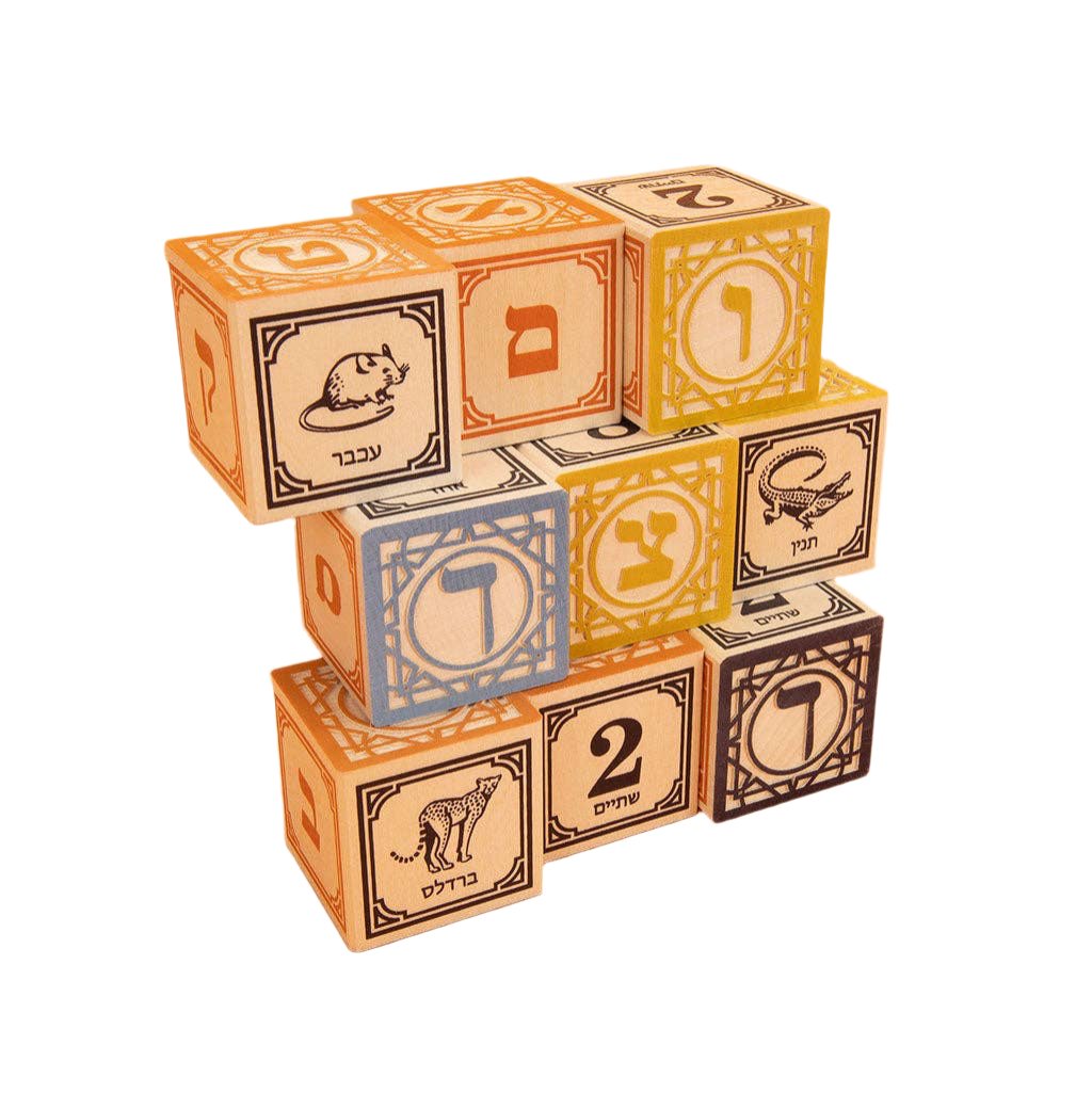 Explore the Hebrew language and teach children about heritage with these enchanting handmade blocks from Uncle Goose. Each block features two embossed letters, one number, and one animal paired with its Hebrew translation.