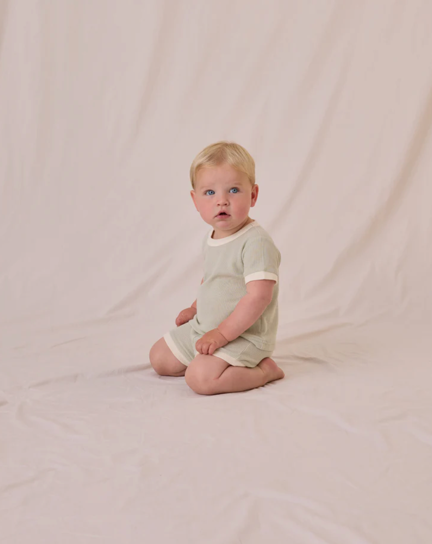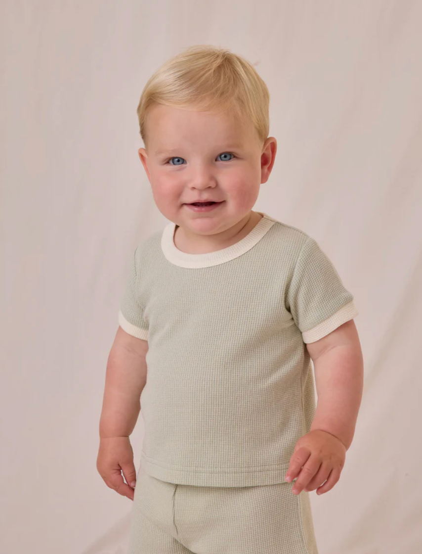 This Waffle Shortie Set is the perfect set for your little one this summer! Featuring a ringer tee and shorts with contrast ribbing along the leg openings.