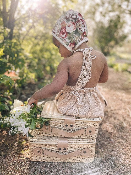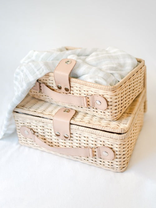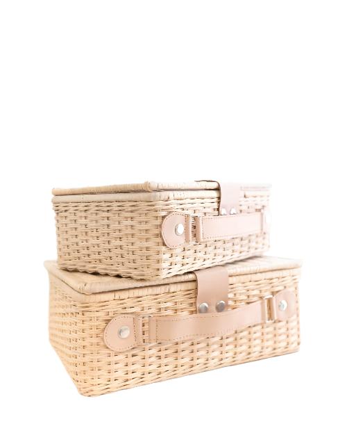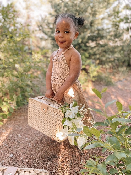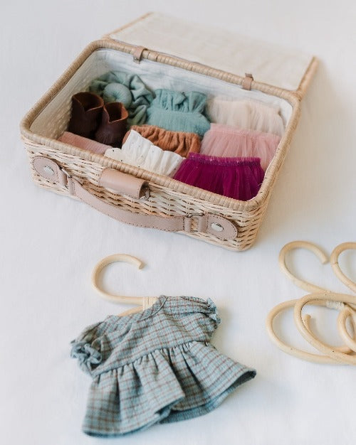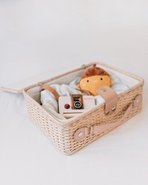 More than a place to store tiny treasures, this suitcase set is packed with endless playtime possibilities. Lightweight, charming, and versatile, made with plenty of space for storing doll clothes, craft supplies, and all other odds and ends. Our Rattan Suitcase Set is perfect for pajama parties, playtime, picnics and more!